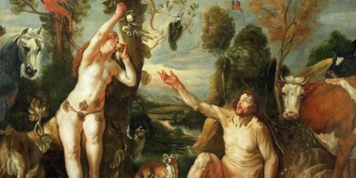 ผลไม้จากต้นไม้แห่งความรู้ (Tree of Knowledge) อันเป็นผลไม้ต้องห้ามที่พระเจ้าห้ามมิให้อดัมและอีฟกิน เพราะมันคือผลไม้แห่งความรู้ ที่จะทำให้ตระหนักรู้ถึงความผิดชอบชั่วดี นั่นจึงเป็นเหตุให้อดัมและอีฟถูกขับไล่ออกจากสวนอีเดนในที่สุด