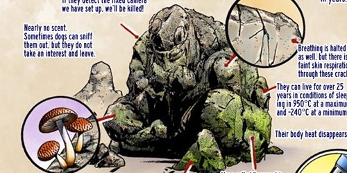 แต่มนุษย์ก้อนหินนั้น จะเป็นสิ่งมีชีวิตที่เปราะบางและแตกสลายง่าย ส่วนที่มนุษย์ก้อนหินมีเหมือนบุรุษเสาหิน คือเป็นสิ่งชีวิตที่มีอายุยืนยาว แต่จำเป็นต้องจำศีลในทุกๆระยะของชีวิตในรูปแบบของอนินทรียวัตถุ แต่มนุษย์ก้อนหินไม่ได้แพ้แสงอาทิตย์แบบบุรุษเสาหิน ทำให้สามารถใช้ชีวิตปะปนกับมนุษย์ได้ แต่เพราะความอ่อนแอ และรูปแบบชีวิตที่ต่างกับมนุษย์อย่างสิ้นเชิง ทำให้ไม่สามารถอยู่กับมนุษย์อย่างปรองดองได้