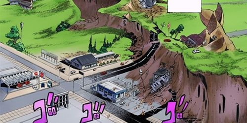 เมืองโมริโอ เวอร์ชัน Jojolion มีความประหลาดที่ตั้งตระหง่านชัดเด่นอยู่ในเมือง คือแผ่นดินที่ยกตัวสูงขึ้นมาเป็นกำแพง ในวันที่เกิดเหตุคลื่นสึนามิ เมื่อเดือนมีนาคม ปี 2011 (อ้างอิงจากเหตุการณ์ที่เกิดขึ้นจริงที่ประเทศญี่ปุ่นในปีเดียวกัน) ราวกับว่ามันผุดขึ้นมาเพื่อช่วยปกป้องเมืองจากคลื่นยักษ์ และกลายเป็นสิ่งที่แทบจะเปลี่ยนรูปร่างของภูมิประเทศของเมืองโมริโอไปจนแทบไม่เหลือเค้าเดิม ภายหลังถูกชาวเมืองตั้งชื่อให้ว่า