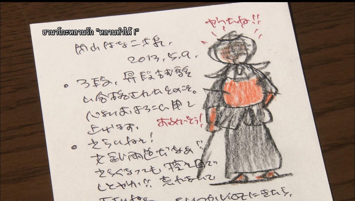 เขียนไปถึงหลานสาวคุณชูอิจิได้สอนคุณฮิเดโกะผู้เป็นภรรยาว่า หากสิ่งใดที่ทำเองได้ให้ลองพยายามทำเองทีละเล็กทีละน้อย และนั่นเป็นสิ่งที่ทั้งสองถือปฎิบัติเสมอมา คู่รักที่อายุรวมกันได้ถึง 177 ปี ได้ผ่านฤดูกาลที่หมุนเวียนเปลี่ยนผ่านมาถึง 65 รอบ ด้วยความเข้าใจซึ่งกันและกัน การเอาใจใส่ดูแลผ่านการกระทำต่างๆซึ่งแสดงออกถึงความรักและความผูกพันที่ไม่ได้เอ่ยออกมาด้วยวาจา นี่เป็นอีกเรื่องที่เราเรียนรู้ได้จากครอบครัวซึบาตะ