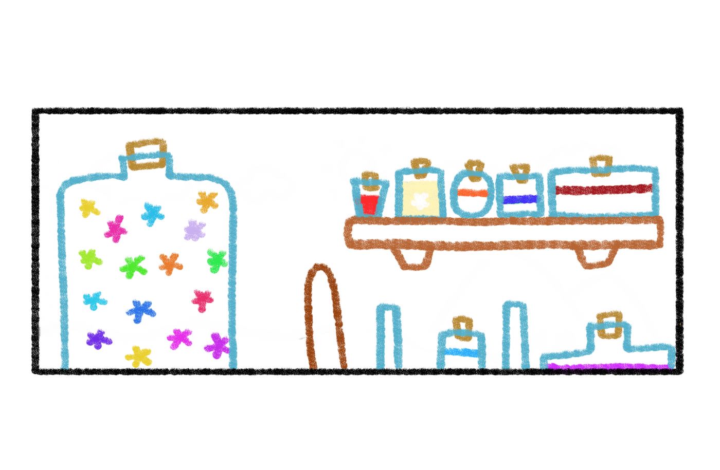 เธอรู้จักชื่อของแอนดี้กับแมนดี้แล้วและพยายามอย่างมากที่จะเรียกทั้งคู่ด้วยชื่อไม่ใช่เรียกว่าก้อนสีฟ้าหรือก้อนสีน้ำตาลอีกเพราะทั้งคู่ไม่พอใจมากที่ถูกเรียกอย่างนั้น แอนดี้กับแมนดี้ถามชื่อของเธอบ้างแต่เธอไม่พูดอะไรและเริ่มเปิดเตาอบให้ส่งเสียงดัง ทยอยนำคุกกี้ที่ปั้นไว้เข้าอบตกแต่งให้สวยงามและรีบวิ่งออกไปวางคุกกี้นั้นไว้ข้างนอก แอนดี้กับแมนดี้มองเธอจากหน้าต่างทั้งคู่คิดว่าอาณาจักรแคนดี้ดูน่ารักสดใสมากแต่การมองตัวคุกกี้ที่ท่าทางไม่เหมือนกันแต่มีใบหน้าเปื้อนยิ้มแบบเดียวกันติดต่อกันมาสักพักเริ่มทำให้พวกมันรู้สึกแปลกๆในหูแว่วเสียงลอยตามลมเข้ามา แม่มด แม่มดใจร้าย เสียงที่มาจากโหลแก้วขนาดใหญ่นั้น