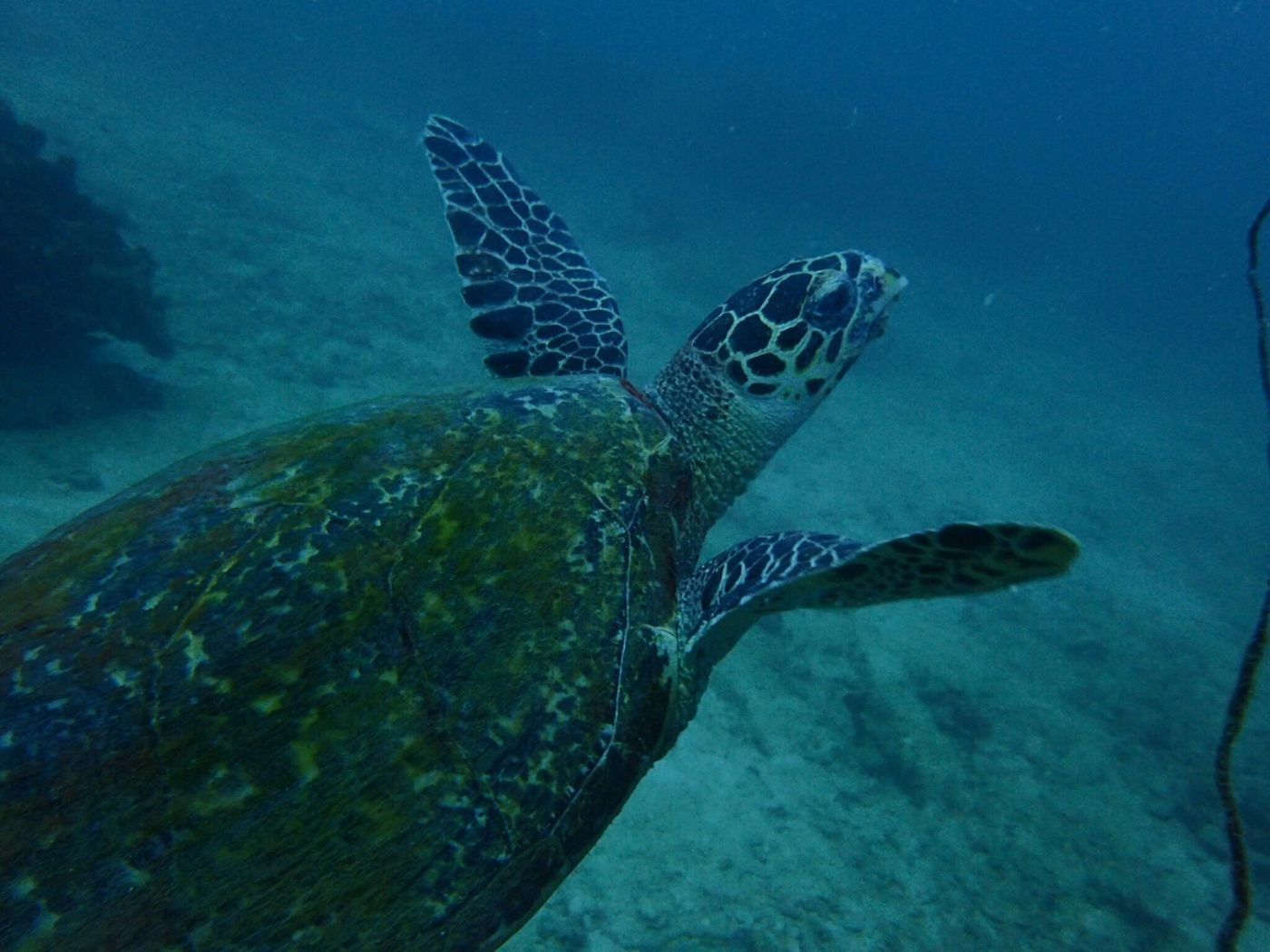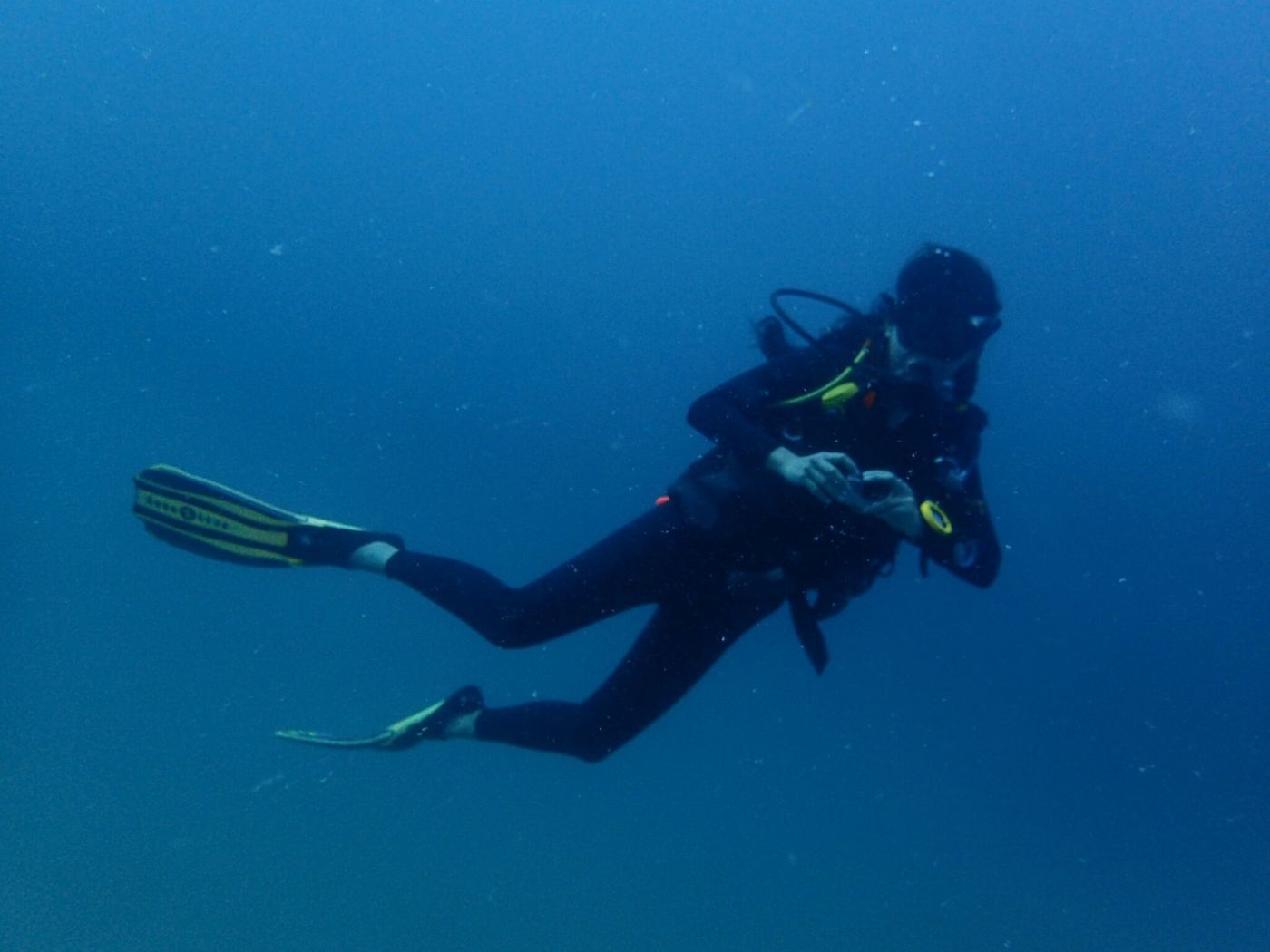 ใส่เสร็จก็ทุลักทุเลบุ๋งๆตามคุณเต่าไป แต่ด้วยความตื่นเต้น หายใจเข้าเยอะเกินเลยลอยห่างเป็นวา ประกอบกับอยู่ในน้ำมันรู้สึกว่าอีกนิดเดียวกูจะแตะตัวได้แล้ว