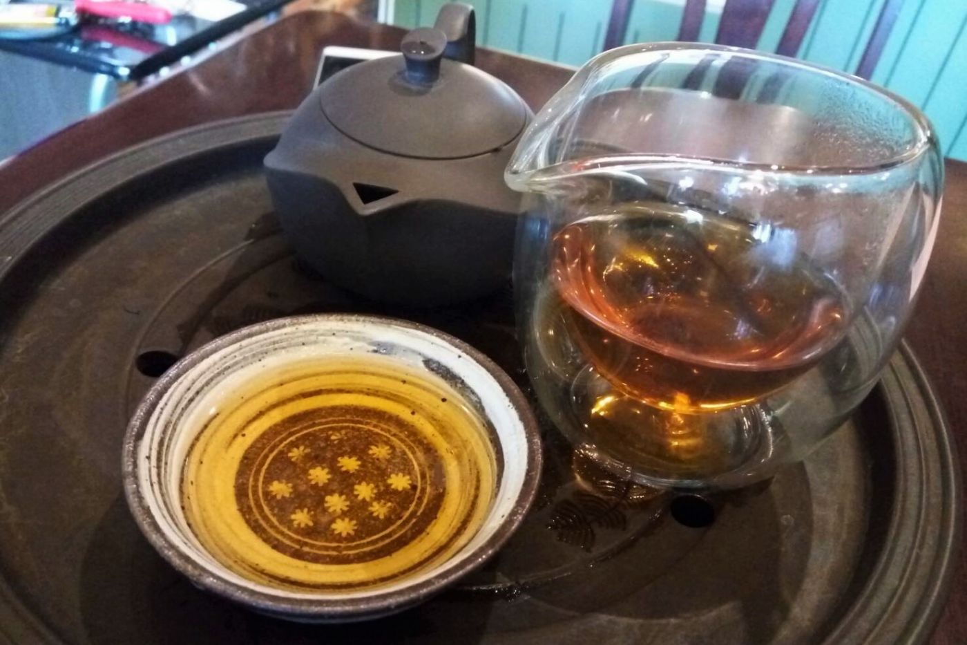 กลิ่นไอไม้ไผ่ที่สานสร้างเป็นพื้นบ้านยกระดับคละเคล้ากลิ่นชาในถ้วยทรงเตี้ย