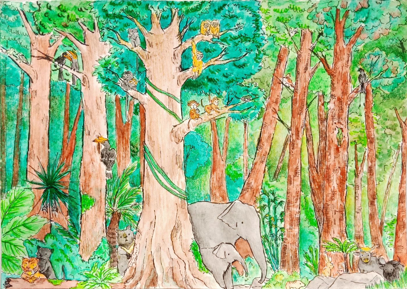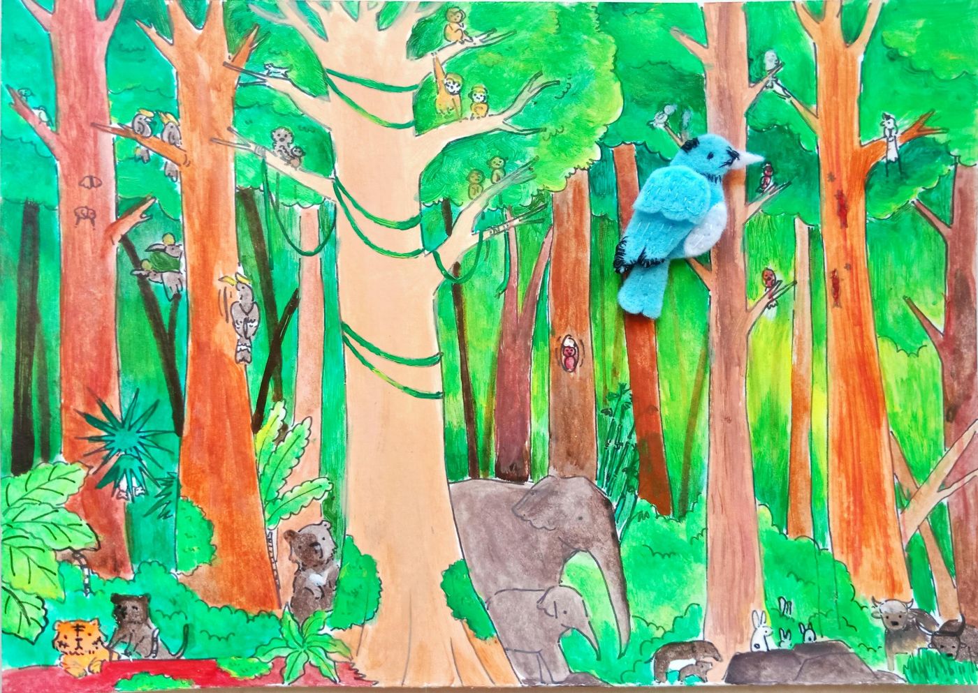 นานหน่อย แต่ผลลัพธ์ที่ออกมาก็ดีน่าพอใจ เพราะข้อมูล รายละเอียดต่าง ๆ วิธีการเล่น หรือสิ่งที่เราต้องการสื่อในฉากที่เราวาด สามารถนำมาใส่ในสื่อผ้าชิ้นนี้ของเราได้ทั้งหมดเลย เราก็ทำเรื่องเดินป่าเหมือนเดิม แค่เปลี่ยนวิธีการทำเท่านั้นเอง