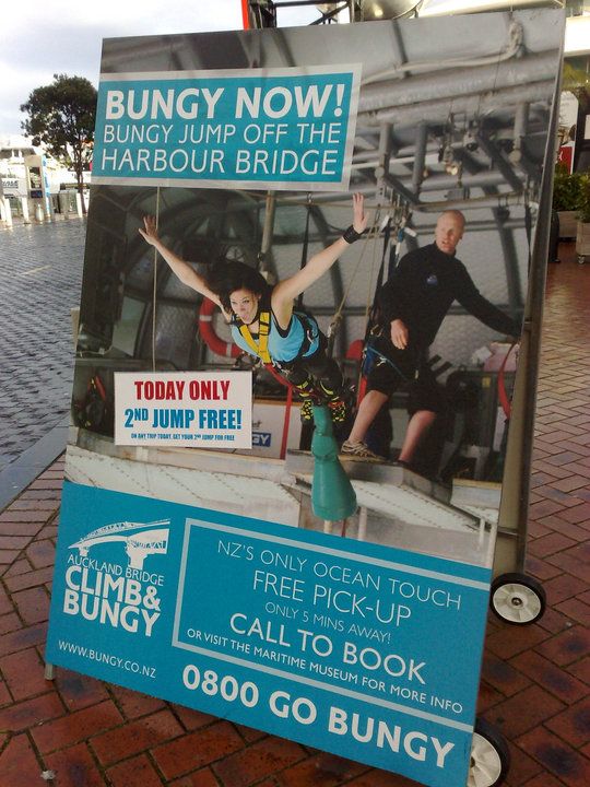 เดินชมเมืองตอนกลางคืน อากาศค่อนข้างหนาวมากๆ ยิ่งดึกยิ่งหนาว ผมไม่สามารถต้านทานความหนาวแบบนี้ได้ ประกอบกับเริ่มเหนื่อยล้ากับการเดิน เดินอย่างเดียวครับ และที่สำหรับพรุ่งนี้ผมจะต้องทำภารกิจสำคัญ ที่มาประเทศนิวซีแลนด์แล้วต้องลองสักครั้ง นั่นคือการกระโดดบันจี้จั้มพ์ใต้สะพาน Auckland และเเพ็คเกจที่ผมจองไว้ ตามภาพเลยครับ