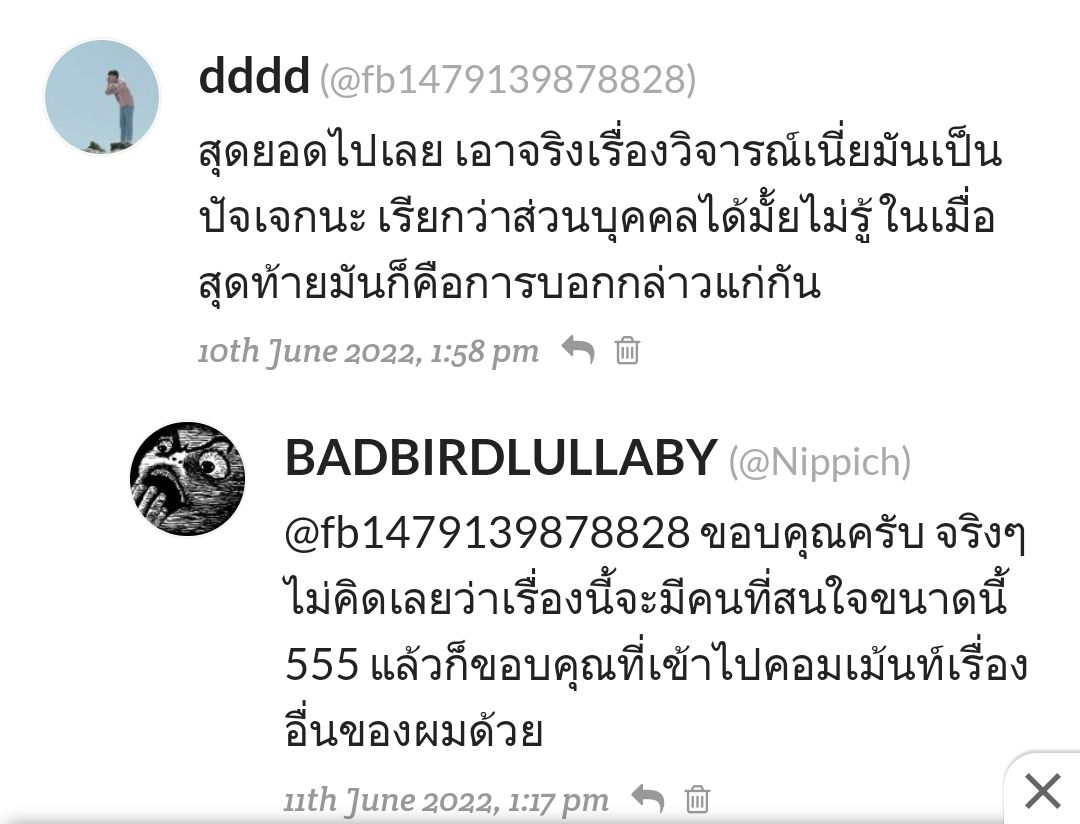 เรื่องนี้เป็นเรื่องที่ชอบรองลงมาจากปากกา แต่ชอบที่สุดตอนเขียนครั้งแรก ตอนนั้นเนี่ยผมรู้สึกถึง spiritual awakening ได้เลย ที่น่าภูมิใจกว่านั้นก็คือไอเดียมันผุดขึ้นมาในหัวตอนรีดผ้าซะด้วยสิ การที่เราคิดอะไรที่มัน original และ high concept ได้อย่างคาดไม่ถึงนี่เป็นเรื่องดีใช่ไหมล่ะ ใช่ไหม?