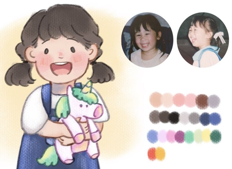 แต่ในการวาดภาพประกอบใหม่ ได้มีการเพิ่มตัวละครหมีนางฟ้าเข้ามา ซึ่งเป็นตุ๊กตากึ่งเพื่อนในจินตนาการของหลานสาว อาจารย์ที่ปรึกษาจึงแนะว่าให้เลือกแค่ตัวใดตัวหนึ่งเพื่อให้ตุ๊กตาตัวนั้นมีความโดดเด่นขึ้นมา ฉันจึงเลือกตัดตุ๊กตายูนิคอร์นทิ้งไป เหลือเพียงตุ๊กตาหมีนางฟ้าเท่านั้น