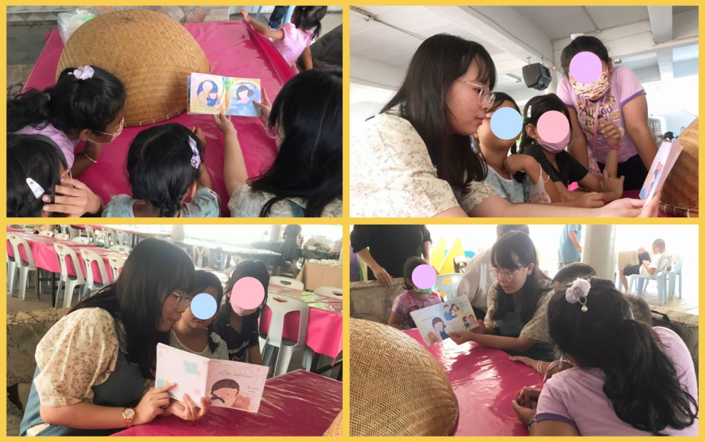 ฉันกับเพื่อน ๆ อีก 3 คนไปทดลองใช้ผลงานของพวกเราที่ คริสตจักรมหาพรตรีมณฑล ถ.เพชรเกษม ต.อ้อมน้อย อ.กระทุ่มเเบน จังหวัดสมุทรสาคร ในวันอาทิตย์ที่ 21 พฤษภาคม 2566 เนื่องจากมีเด็ก ๆ ไปเรียนและเข้าร่วมกิจกรรมของโบสถ์อยู่เป็นประจำ ถึงแม้จะมีเด็กหลายคนแต่การหาเด็กตรงกลุ่มเป้าหมายของชิ้นงานและเด็กที่มีสมาธิตั้งใจทดลองฟังหนังสือภาพของฉันนั้นไม่ง่ายเลย อาจเพราะใกล้เวลาเที่ยงที่ทุกคนในโบสถ์จะร่วมรับประทานอาหารกลางวันด้วยกัน เด็ก ๆ จึงสนใจเพียงว่ามื้อเที่ยงวันนั้นมีเมนูอะไร ด้วยเหตุนี้เราทุกคนจึงต้องรับประทานอาหารกลางวันร่วมกับทุกคนในโบสถ์ก่อนจึงได้เริ่มทดลองใช้ผลงานจริง ๆ ช่วงบ่ายแทน (มื้อเที่ยงวันนั้นมีข้าวไข่พะโล้กับทอดมัน พร้อมด้วยของหวานเป็นวุ้นมะพร้าวกะทิ อร่อยมาก)