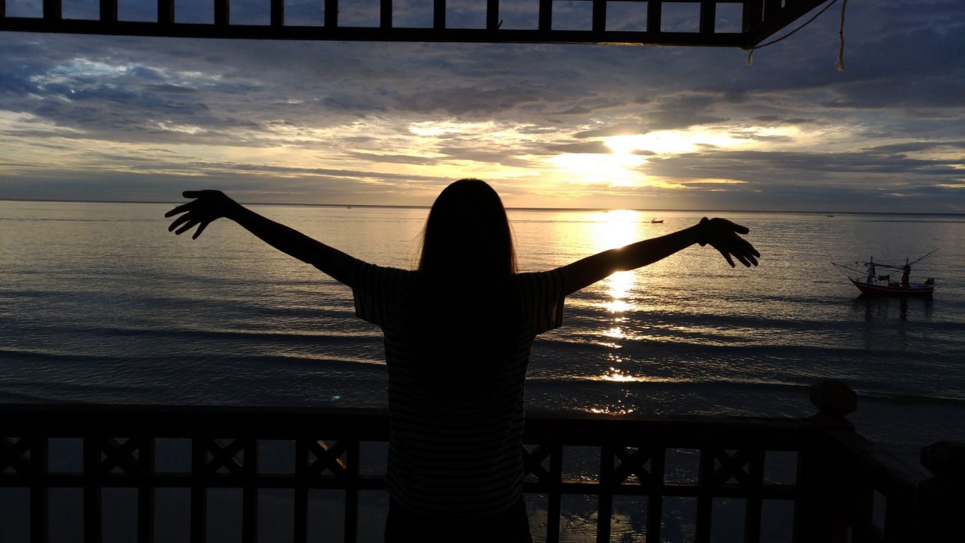 ใช้เวลาเดินทางประมาณ 3 ชั่วโมง บอกให้เค้าไปจอดที่ซอยหัวหิน 51 หลังจากนั้นก็พึ่ง GPS หาที่พักเอาเลย พอถึงที่พักปุ๊บ สิ่งแรกที่ทำหลังจากวางกระเป๋าคือวิ่งไปที่ระเบียงที่พักเพื่อสิ่งนี้..