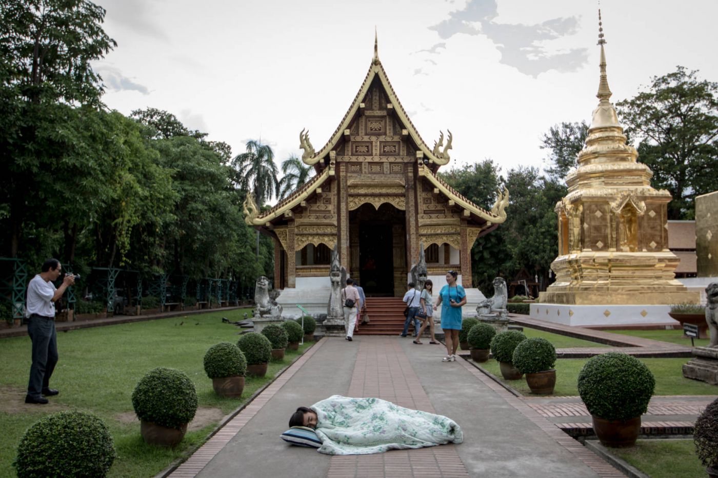 งานของออฟเจาะลึกมากขึ้นเมื่อเขาต้องการสร้างความขัดแย้งในงานมากขึ้นไปอีก สถานที่ทั้ง 12 แห่งที่ออฟเลือกล้วนแต่เป็นสถานที่ที่มีชื่อเสียง เป็นแลนด์มาร์คเป็นพื้นที่สาธารณะที่มีคนพลุกพล่าน ออฟต้องการโยนคำถามให้ผู้รับสื่อของเขา ออฟต้องการสร้างความน่าสนใจให้งานของเขาด้วยความขัดแย้งในภาพ ออฟเริ่มออกถ่ายภาพตนเองนอนตามสถานที่ต่างๆ ไม่ว่าจะเป็น อาคารเรียนรวมของมหาลัย วัด สี่แยกไฟแดง สะพาน วัด ห้างสรรพสินค้า ถนนคนเดิน อ่างเก็บน้ำ เมื่อออฟถ่ายงานครบทั้ง 12 ภาพออฟปล่อยภาพออกมายั่วเพื่อนๆด้วยการลงภาพ ส่วนหนึ่งของงานในสื่อโซเชียล งานของออฟดีมาก ทั้งในเรื่องคอนเซป และการจัดองค์ประกอบภาพที่เขาปล่อยออกมาให้เพื่อนกันดูเล่นๆจึงถูกแชร์ต่อๆไป และเรื่องก็เกิดขึ้นเมื่อมีคนตีความงานของเขาผิด คิดว่าเขาต้องการประชดเรื่องปัญหาการจราจรในจังหวัดเชียงใหม่ ได้มีการแคปภาพของออฟพร้อมแคปชั่นใต้ภาพ “หาที่นอนใหม่ๆให้ตัวเอง”แล้วนำไปเขียนข่าวใหม่ตามเว็ปไซต์ต่างๆ พร้อมกับการตีความสื่อที่ผิดไปจากเดิม และเมื่อเรื่องไปถึงตำรวจ เรื่องก็ใหญ่ขึ้นไปอีก ในขั้นตอนการถ่ายงาน ออฟใช้เวลาในการถ่ายงานสั้นมากในแต่ละรูป กว่าจะเป็นรูปแต่ละรูปที่เราเห็นกันออฟต้องเดินสำรวจโลเคชั่น หามุม จัดแสง เตรียมการทุกอย่างให้พร้อม ออฟรอให้ถึงเวลาไฟแดง รอให้คนอื่นเดินข้ามถนนให้หมดก่อน แล้วจึงนอนไปนอนและให้เพื่อนอีกคนกดชัตเตอร์ให้ เวลาที่ออฟใช้ในการถ่ายนั้นสั้นมาก สั้นกว่าเวลาที่คนบางคนใช้ในการเซลฟี่ซะอีก ออฟไม่ต้องการสร้างความเดือดร้อนให้กับผู้อื่นในพื้นที่สาธารณะจนเกินไป แต่สิ่งที่ออฟพลาดไปคือออฟไม่ได้ติดต่อเจ้าของสถานที่ก่อน ซึ่งออฟบอกว่า ถ้าจะเอาผิดเรื่องนี้ก็ว่ากันไปตามตรง แต่เขาไม่ได้ถ่ายงานชุดนี้เพื่อประชดอะไรแน่นอน