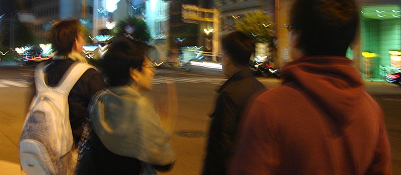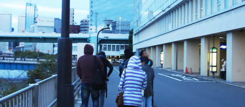 เดินลงมาก็มีคนอื่นๆ รออยู่แล้ว แบบยืนบ้าง นั่งรออยู่แล้วที่พื้นบ้าง แต่พอคุยไปมา หลายคนไม่ไปเพราะเหนื่อยอยากพัก แต่เราเพิ่งเคยมาญี่ปุ่นครั้งแรก และไม่มีเงิน ไม่รู้จะได้มาอีกเมื่อใด ก็เลยจะเดินออกไปเดินเล่น สรุปก็มีอาจารย์ยุ้ย, พี่เต๋า, พี่ป๊อปทั้ง 2 คนและเรา