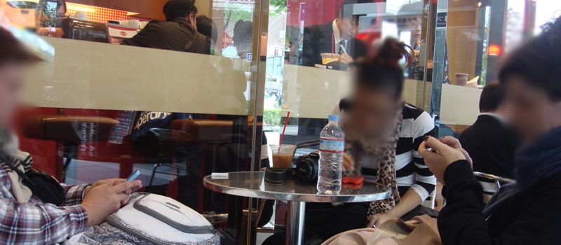 พอถึงจากสถานีรถไฟใต้ดิน ก็มานั่งพักที่ร้านอาหารแห่งหนึ่ง คนอื่นก็ไปซื้อไรกิน แต่เรายากไร้ก็เลยไม่ได้ไปซื้ออะไรทั้งนั้น นั่งอยู่ด้านหน้าร้านกับคนอื่นๆ เฉยๆ
