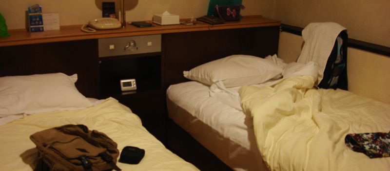 ตอนประมาณบ่าย 3 มั้งก็มาถึงโรงแรมชื่อ "Hotel Osaka Castle" ซึ่งพวกเราช่วยกันหาใน Agoda ว่าจะพักที่ไหน หลักๆ น่าจะติดรถไฟใต้ดินเพื่อสะดวกในการเดินทาง ซึ่งเราพักกับพี่จี๊ด นอกนั้นนอน 3 คน แบ่งเป็นผู้หญิงและผู้ชาย คือ หอม, แบท และคริสติน่า อีกห้องคือพี่เต๋า และ 2 พี่ป๊อป...ก่อนเข้าพักก็มีถามรวมอาหารเช้ามั้ยแบบจ่ายเพิ่มแต่เราไม่เอา ไม่มีเงิน ไปหากินเองได้ข้างนอก