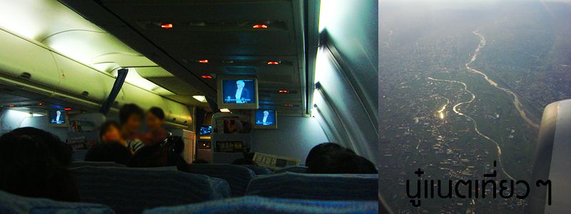 ตอนนั่งบนเครื่องก็หาที่นั่งไม่เจอเพราะมีคนนั่งผิดที่ แต่สุดท้ายแอร์มาดูให้ เราอ่ะมาถูกที่ คนนั้นเลยต้องลุกไปหาที่นั่งที่ถูกต้อง เราก็ไอๆ เยอะเหมือนกัน แต่เพราะเราเป็นคนไม่สนใจไรเท่าไหร่ก็เลยเอาแค่ยาแก้ไอไป ไม่มียาแก้ไข้หรืออื่นๆ....ตอนนั่ง ถ้าจำไม่ผิดเหมือนนั่งกับพี่เต๋า...