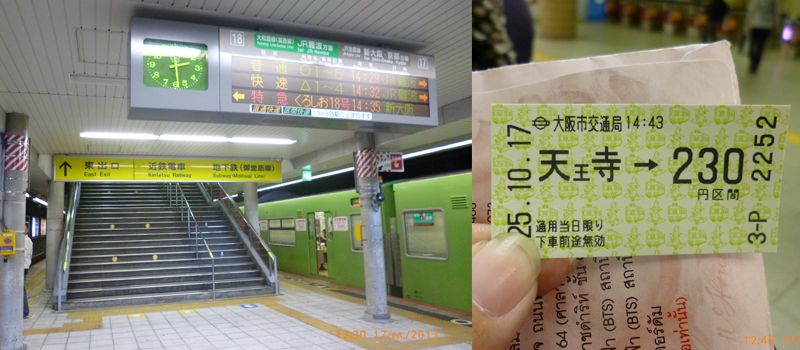 มาถึง "โอซาก้า" ประมาณ 11 โมงกว่า แถวที่ตรวจคนเข้าเมืองไม่ได้เยอะเท่าไหร่ แต่ก็แอบลุ้นว่าจะผ่านมั้ยเพราะอยากเที่ยวมาก อุตส่าห์มาถึงแล้ว คนอื่นๆ ก็เคยไปมาหลายประเทศ แต่ของเราไม่ได้ไปสักประเทศ แต่ก็ผ่านมาได้ และพอออกมาจากจุดนั้น เราก็ต่อรถไฟกันต่อไปยังที่พัก ซึ่งการซื้อตั๋วรถไฟ เราก็ตามผู้นำคนไป แค่ยื่นเงินส่วนเราให้ เพราะเราใช้เครื่องขายตั๋วไม่เป็น