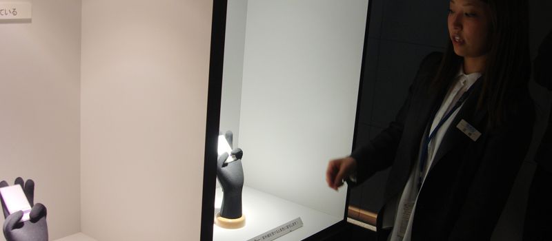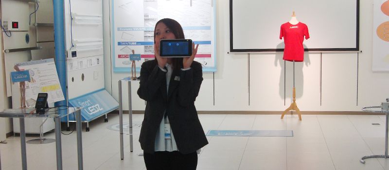 มีพนักงานมาต้อนรับและพาเราเดินไปชั้นต่างๆ ที่มีการจัดแสดงสินค้าและเทคโนโลยีของเขา ซึ่งเราฟังภาษาอังกฤษไม่ค่อยออก ก็เลยเดินตามและดูๆ สิ่งที่เขาจัดแสดงไปเรื่อยๆ