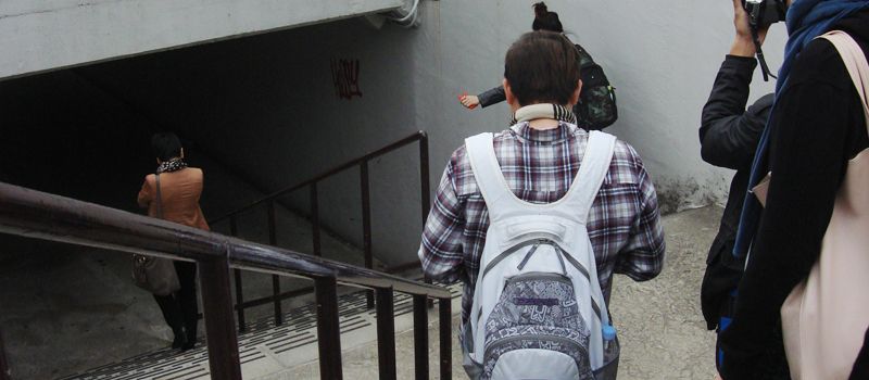 ลงไปที่สถานีรถไฟใต้ดินแห่งหนึ่ง