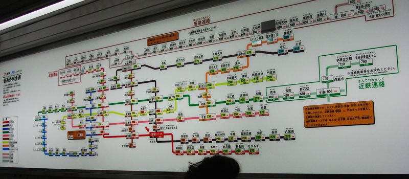 ส่วนตารางรถไฟ ไม่ได้ไปนานแล้วแต่ก็คงแบบแยกเป็นสีๆ มีชื่อสถานีและราคาค่าเดินทาง เวลามองก็ไล่ดูไปเรื่อยๆ ว่าสถานีที่เราจะลงอยู่ตรงไหน ถ้าจะต่อรถไฟต้องไปลงสถานีไหนก่อน แต่ที่พักที่พวกเราเลือกเช็คกันก่อนแล้วว่าใกล้สถานีรถไฟฟ้า