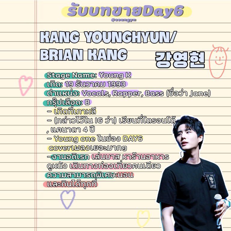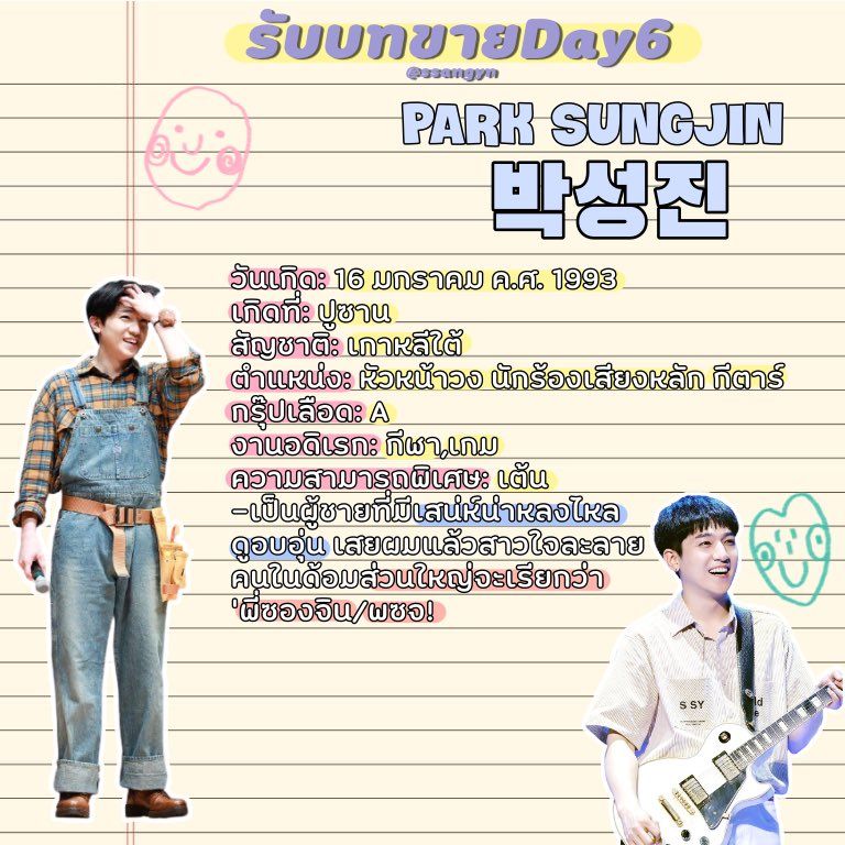 Sungjin: ตอนเริ่มมาตามDay6ไม่ค่อยเห็นเท่าไร แต่พอดูๆไปที่ช่วงหลังๆเขามาvlive บ่อยๆ รู้สึกว่าเป็นคนอบอุ่นนะ เป็นเหมือนพี่ชายได้เลย มีความคิดเป็นผู้ใหญ่มากๆ