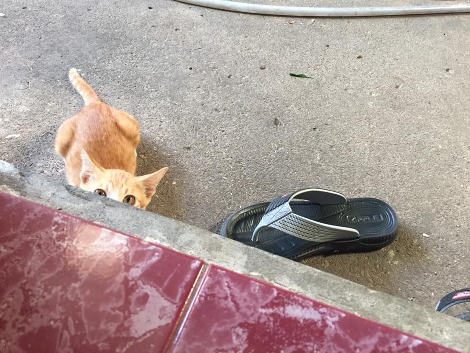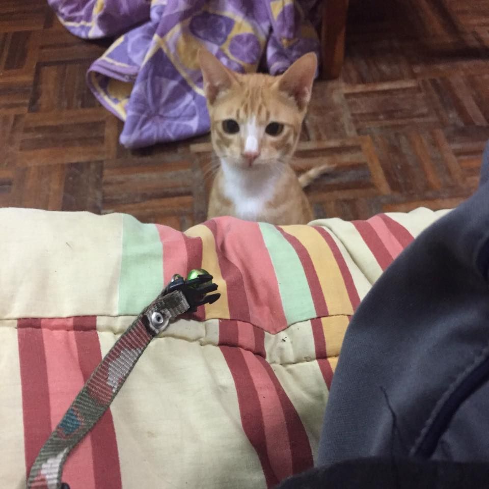 ใต้โต๊ะอาหารคือที่ประจำของหล่ำเวลาเห็นมะนุ้ดไปนั่งกินข้าว
