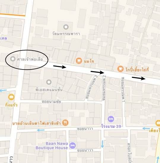 เดินเลี้ยวมาทางเข้าศาลเจ้าพ่อเสือ