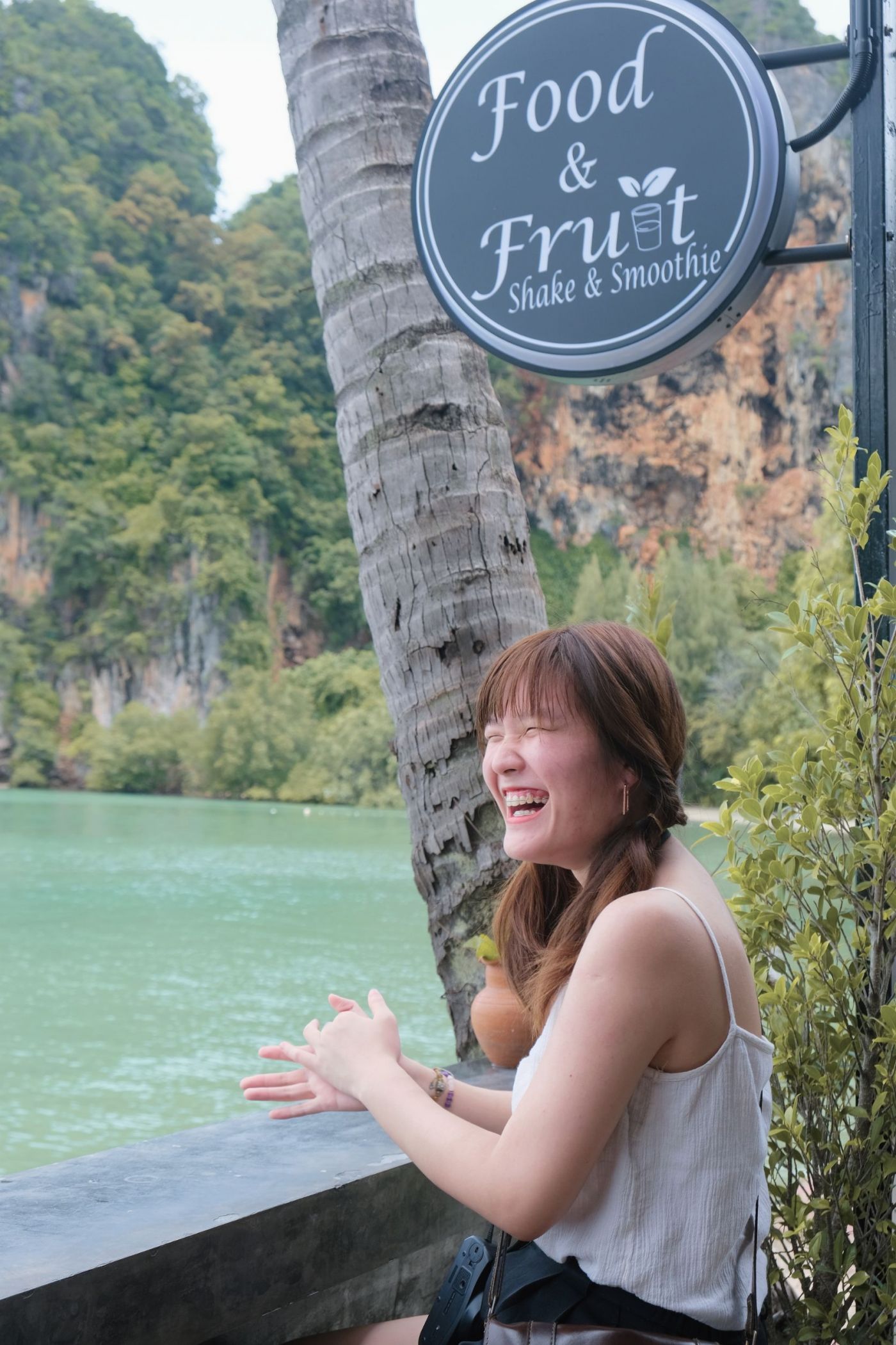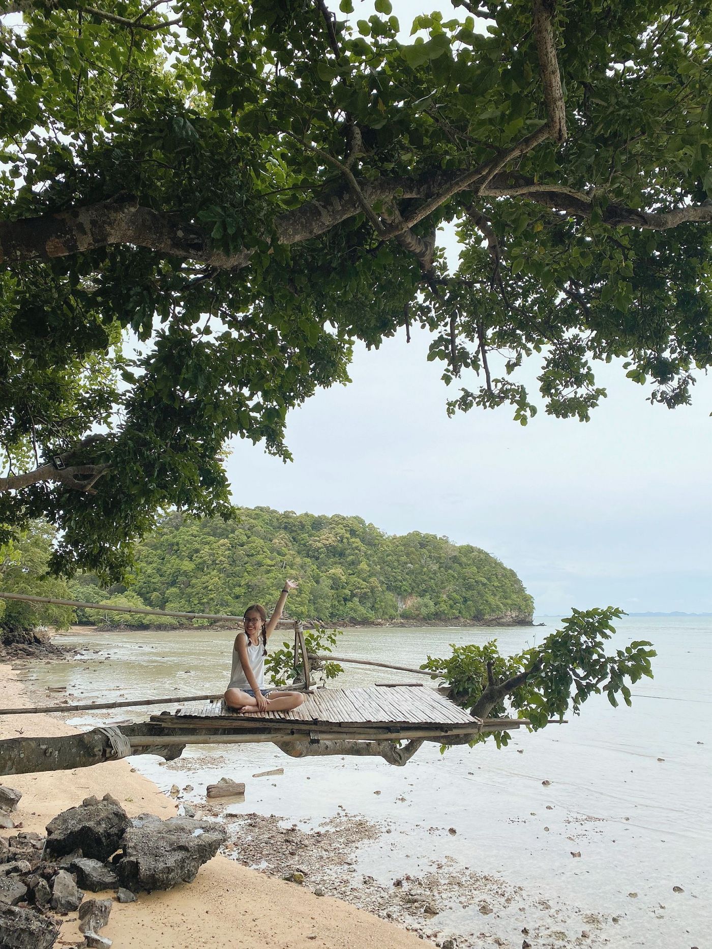 คาเฟ่ที่เรามาชื่อว่า Tew Lay Bay ที่ร้านนี้มีจุดถ่ายรูปที่เราตั้งใจมาเพื่อถ่ายรูปโดยเฉพาะ คือจะมีจุดให้นั่งถ่ายรูปยื่นออกไปบนต้นไม้ ซึ่งปกติเนี่ยตรงด้านล่างถ่ายรูปออกมาจะเห็นน้ำทะเล แต่จังหวะที่เราไปน้ำลดพอดี เลยเห้นพื้นด้านล่างแทน โอ้ยย สูงมากเลยค่ะ เดินไปนั่งก็ขาสั่น แต่ไปถึงที่แล้ว จะไม่กล้าก็ไม่ได้อีก 555555555555555555555555555