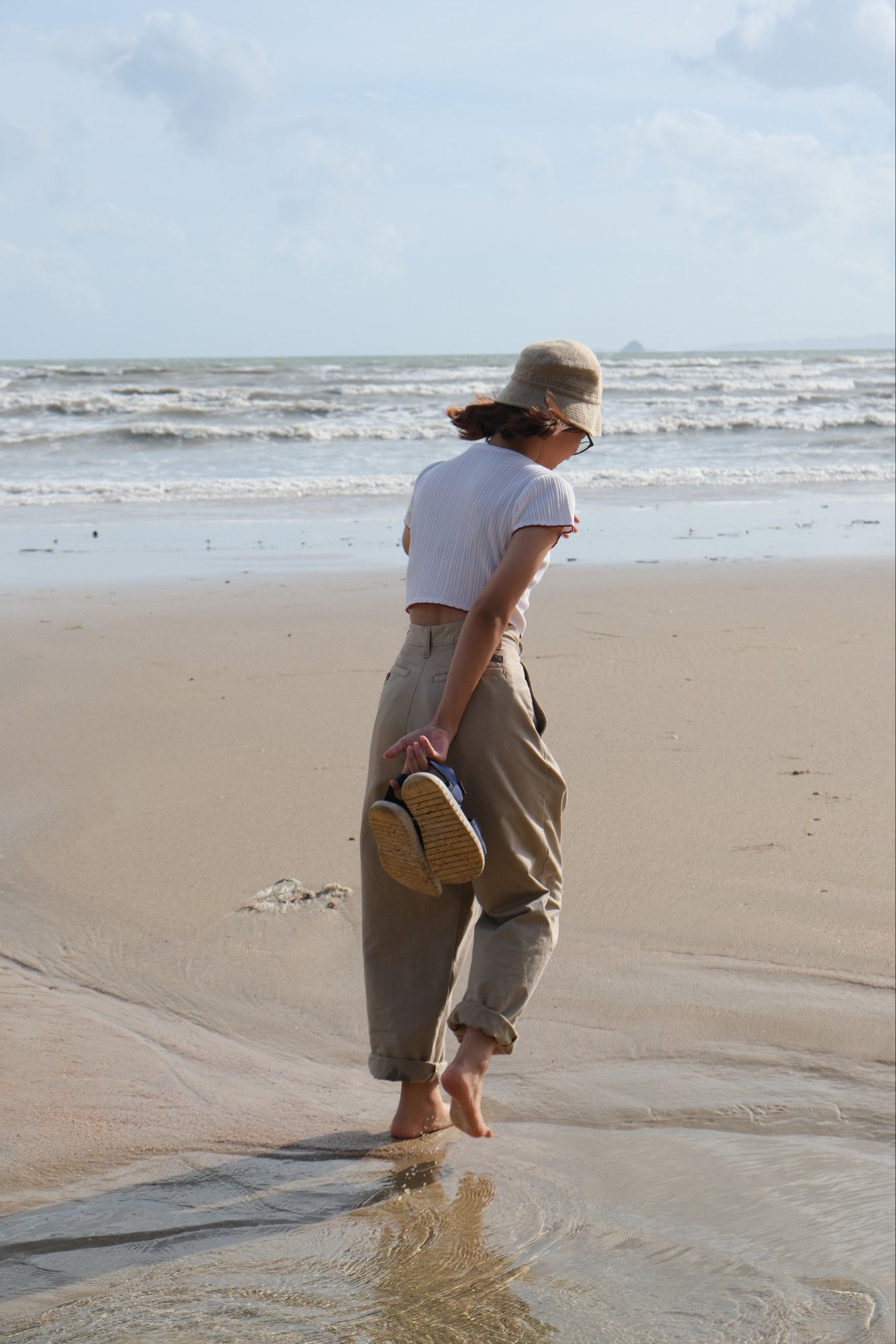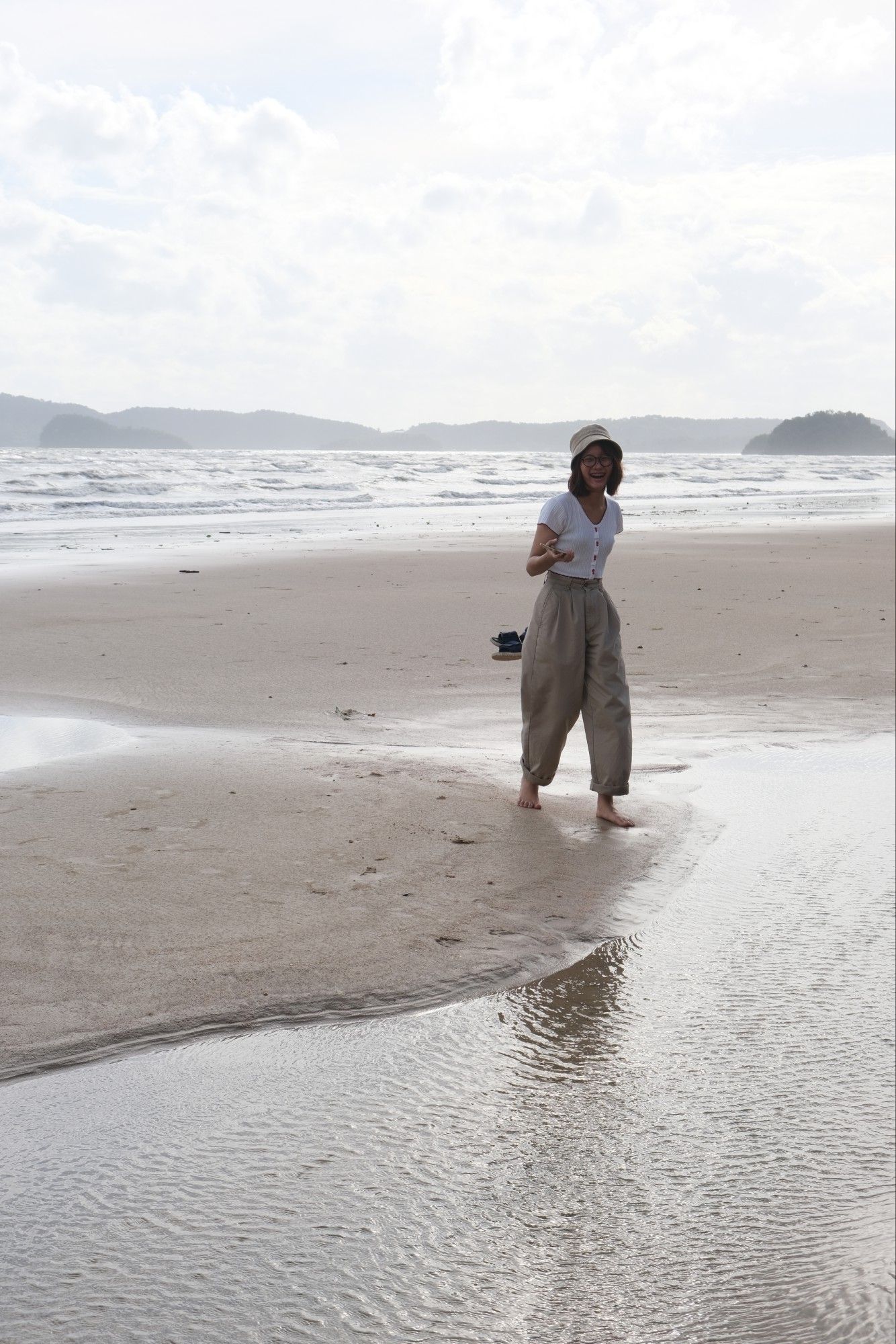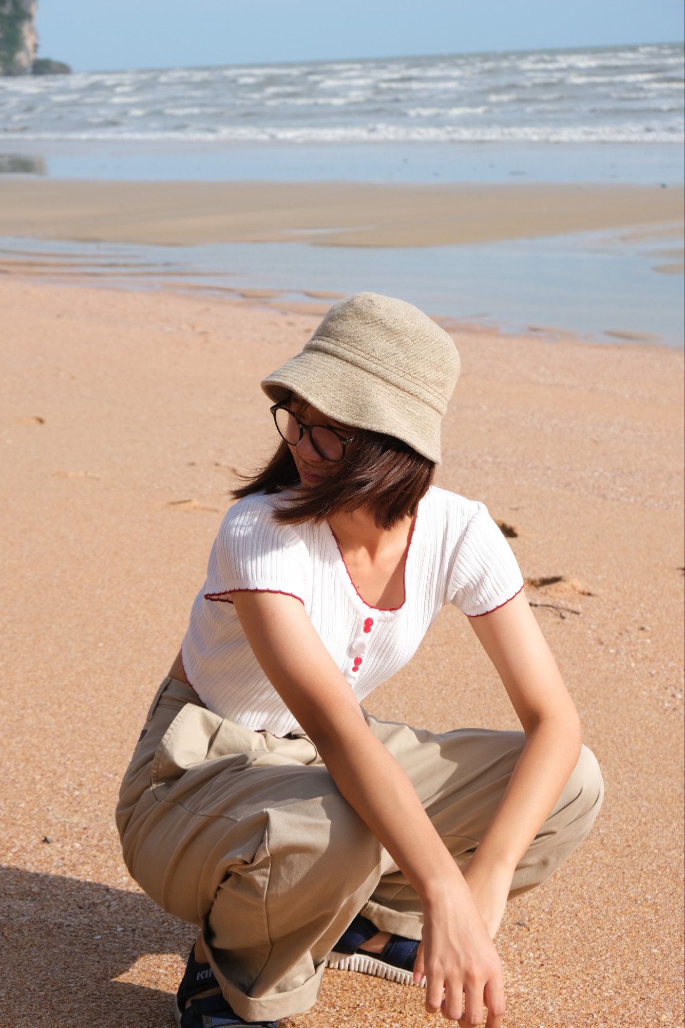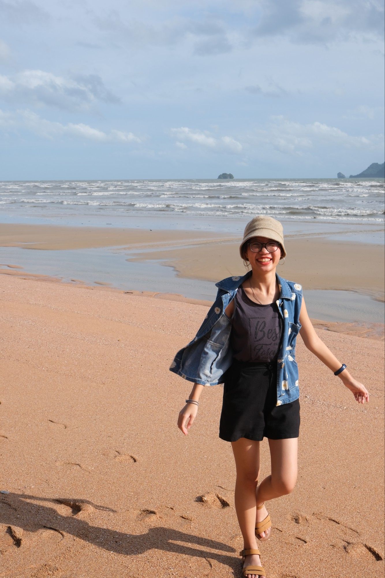 ระหว่างทางกลับที่พักจะผ่านหาดเลยแวะลงไปถ่ายรูปเล่นกัน เพราะยังมีแสงอยู่ ตอนลงไปถ่ายแรก ๆ แสงจ้ามาก แต่ถ่ายออกมาแล้วสีรูปไม่ติดเหลืองติดส้มเกินไปนะคะ พยายามไม่ย้อนแสงเอา เพราะเดี๋ยวหน้าจะมืด 5555555555555555 แถบตรงหาดไม่ค่อยมีคนเลย แบบนับคนได้ ถ่ายรูปออกมาข้างหลังเลยไม่ติดคนอื่นเลย