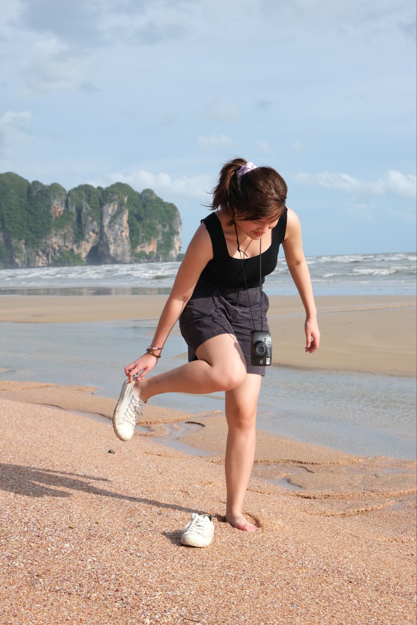 หลังจากมาถึงคือหาร้านนั่งพัก หาน้ำปั่นกิน รอเสื้อผ้าแห้งกันก่อนแล้วกะว่าค่อยเดินลุยไปหาจุดถ่ายรูปที่ตั้งใจไว้ ทางที่เดินไปจุดถ่ายรูปตรงหาดพระนางเราต้องเดินลัดหาดไป เพราะว่ามันอยู่ติดกับรีสอร์ทนึง เลยจะเดินผ่านรีสอร์ทเขาไปไม่ได้ และตอนที่เดินไปตอนนั้นน้ำกำลังขึ้น ต้องค่อย ๆ เดิน เพราะคลื่นซัดแรงมาก 55555555555555555555555 เดี๋ยวจะเละอีกรอบนึงก่อนได้ถ่ายรูป