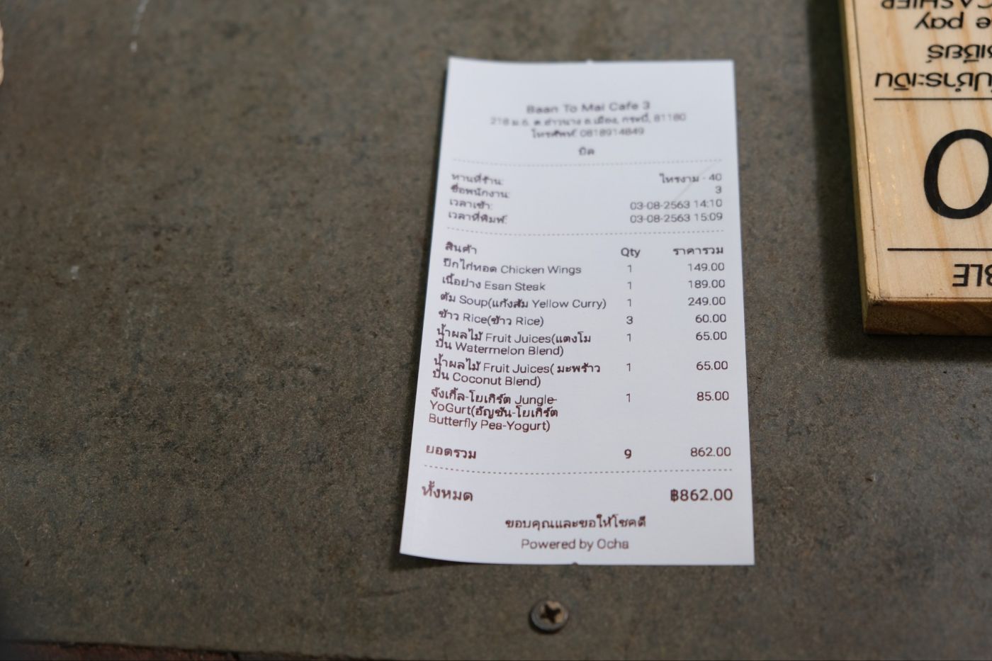 Total = 3866 บาท