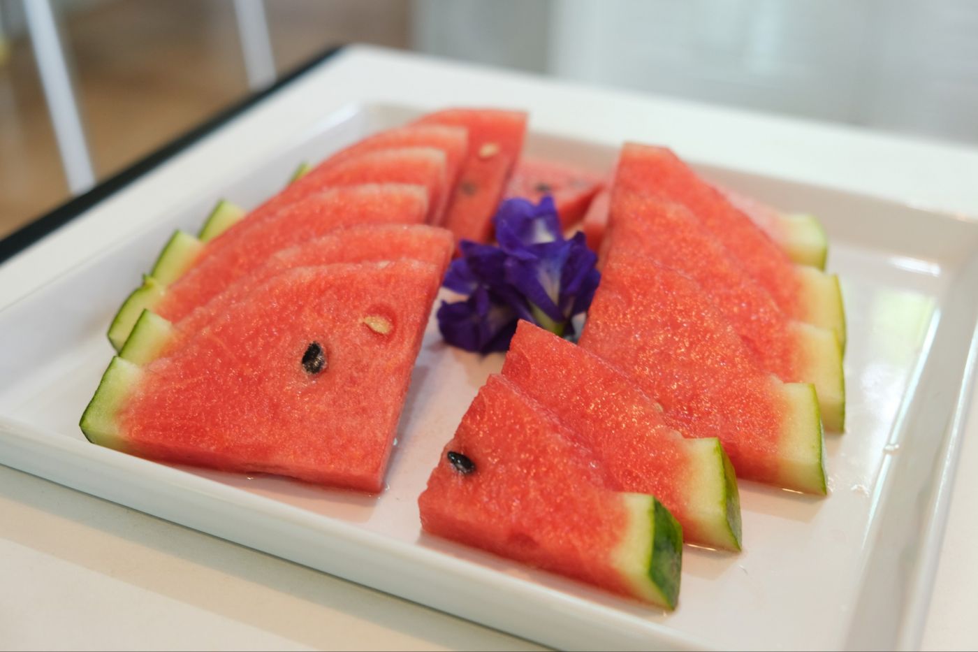 ที่อื่นมี welcome drink  แต่ที่นี่มี welcome fruit นะคะเสิร์ฟแตงโมมาจานเท่าถาด