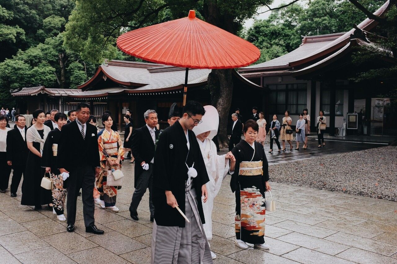 เดินเข้ามาข้างในประมาณสัก 1 กิโลเมตรก็จะเจอกับวัดที่ตั้งอยู่ภายในสวนสาธารณะ ซึ่งวันนี้เราโชคดีมากได้เห็นพิธีแต่งงานเก่าแก่ของคนญี่ปุ่นภายในวัดพอดี