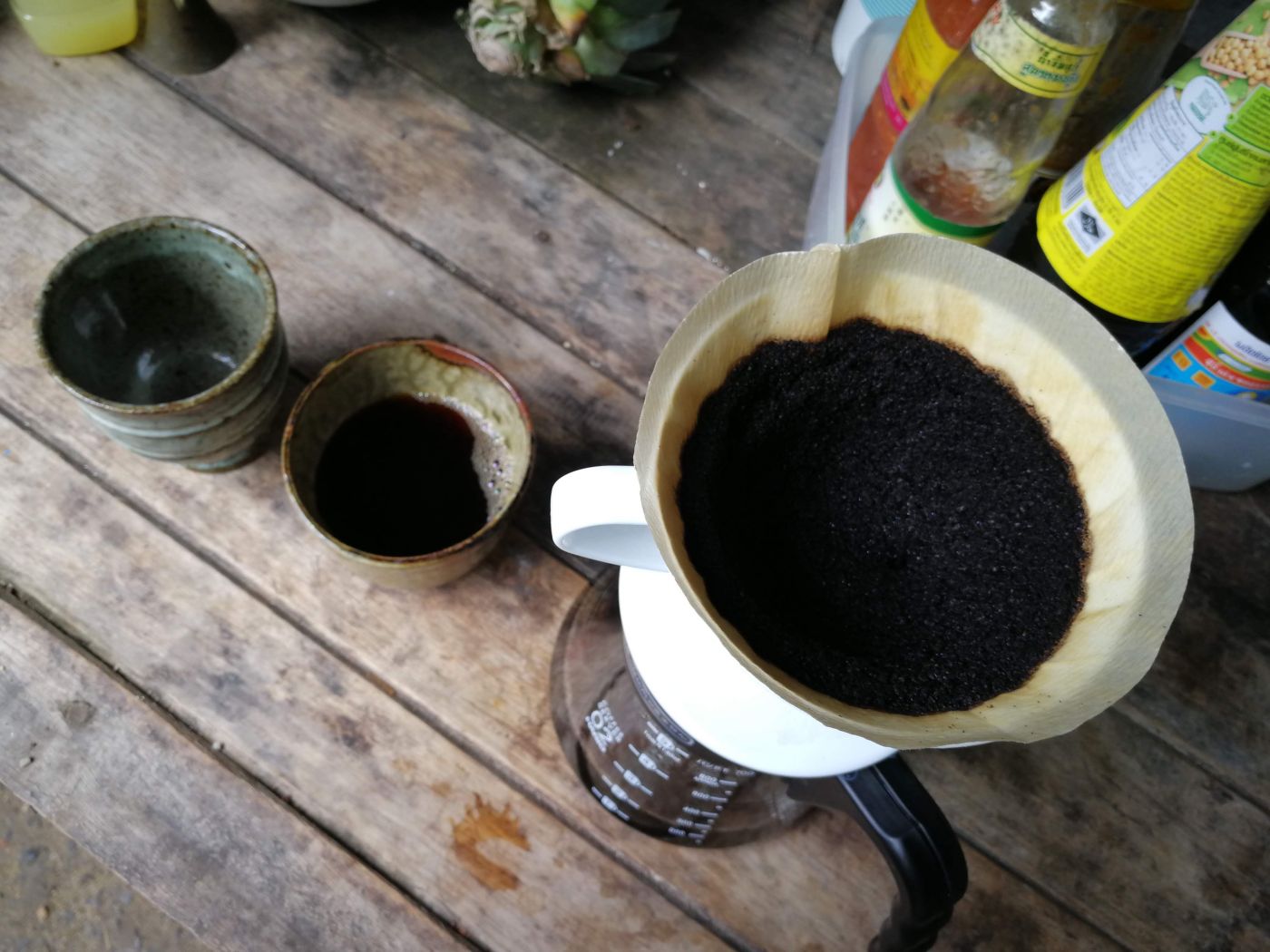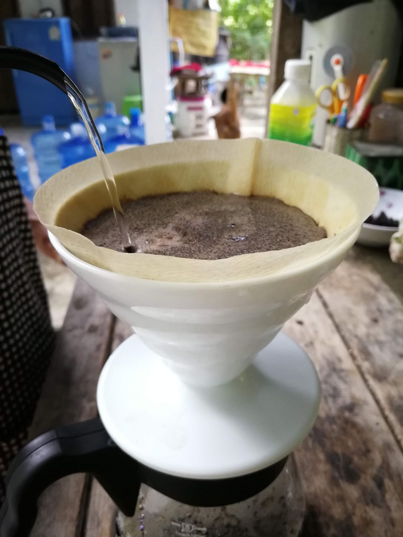 วิธีการไม่ยากเลย เราซื้อกาแฟคั่วแล้วมาจากเจ้าประจำในความเข้มที่เราต้องการ ถุงหนึ่งกาแฟอาราบิก้าจากภาคเหนือ อีกถุงนึงกาแฟโรบัสต้าจากภาคใต้ นำมาใส่เครื่องบดกาแฟแบบมือ บดตามจำนวนคนดื่มแล้วก็ต้มน้ำร้อนรินลงไปบนกาแฟได้เลย ฟิลเตอร์นั้นนอกจากจะช่วยกรองเศษกาแฟแล้วยังสามารถกรองคาแฟอีนให้ลดลงได้อีกด้วย ส่วนใครชอบหวานแค่ไหนก็ใส่น้ำตาลตามใจชอบกันเองได้เลยจ้า แต่พี่เอและพี่กุ๋ยผู้ชื่นชอบการดื่ม Drip coffee จนต้องซื้อเครื่องบดกาแฟมาทำเองที่บ้าน ดื่มแบบเพรียว ดีต่อสุขภาพมากที่สุด