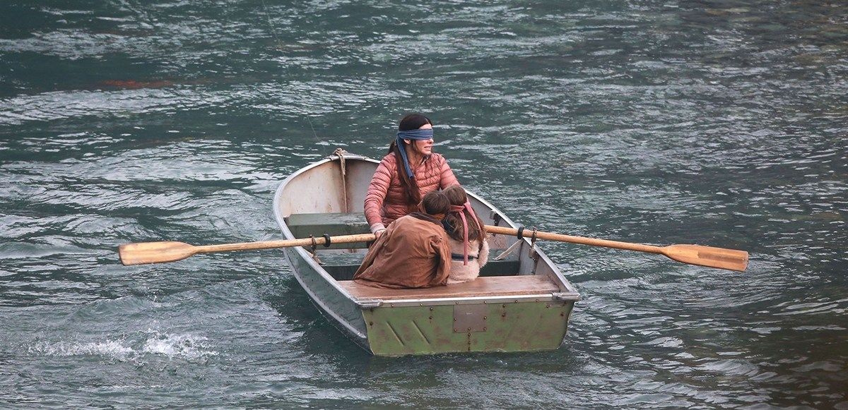เปิดเรื่องด้วย มาโลรี่ สั่งเด็กทั้งสองคน ไม่ให้ถอดผ้าปิดตาเด็ดขาด ไม่ว่าจะเกิดอะไรขึ้น ซึ่งเป็นฉากที่เราเห็นกันใน trailor แต่สิ่งที่เป็นจุดสำคัญของเรื่อง คือ กล้องฉายให้เราเห็นว่า มาโลรี่เอานกใส่กล่องไปด้วย ทั้งๆที่สัตว์เลี้ยงเป็นสิ่งที่ไม่เข้ากับสถานการณ์เสี่ยงชีวิตของเธอและเด็กทั้งสองอย่างมาก อย่างไรก็ตามการเดินทางกว่า 42ชั่วโมง ก็เริ่มต้นขึ้น