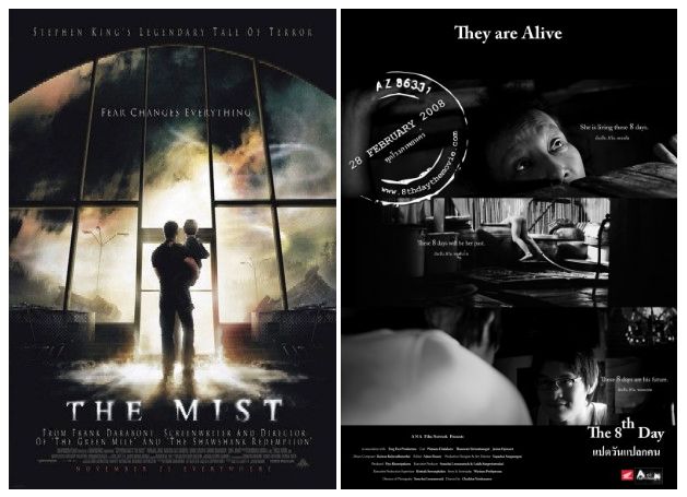 แม้ว่า The Mist กับ แปดวันแปลกคน จะเป็นหนังที่ไม่มีอะไรเหมือนกันเลย เรื่องแรกเป็นหนังฝรั่งสร้างจากเรื่องสั้นของสตีเฟ่นคิง ว่าด้วยหมอกลึกลับที่คลุมเมืองเมืองหนึ่งแล้วมีสัตว์ประหลาดแฝงกายในนั้น ส่วนแปดวัน แปลกคน เป็นหนังขาวดำที่ว่าด้วยชีวิตของป้าแก่ ๆคนหนึ่งที่ควบคุมชีวิตของเด็กผู้หญิงคนหนึ่งโดยไม่รู้ตัวในบ้านของตนเองที่ไม่มีใครย่างกราย