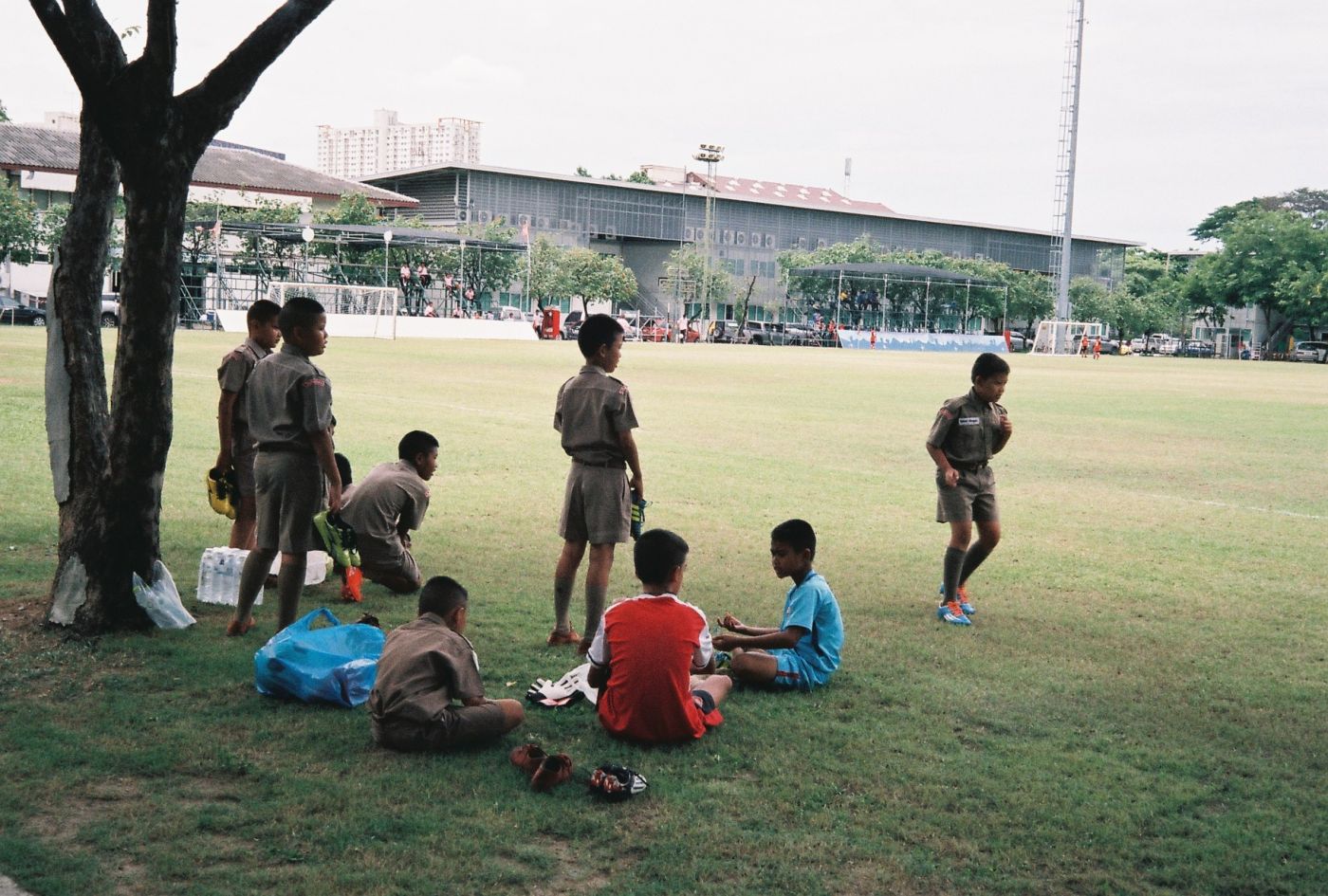 เด็กน้อยนักฟุตบอล ที่เหมือนจะมาใช้สถามที่ทำงานเราแข่งฟุตบอลกันอยู่ เหนื่อยมั้ยไอ้น้องชาย