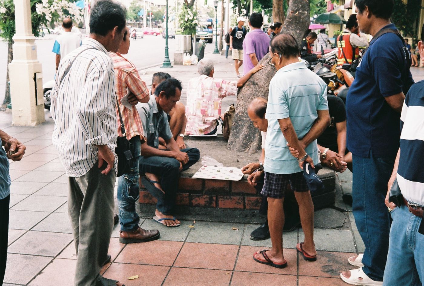 เดินผ่านเหล่าคุณลุงที่กำลังเล่นหมากรุกกันเข้มข้นมาก แต่เท่าที่ดูแล้ว ฝ่ายกองเชียร์ที่ยืนอยู่รอบๆน่ะดูเครียดกว่าสองคนที่เป็นคนเดินหมากอีก