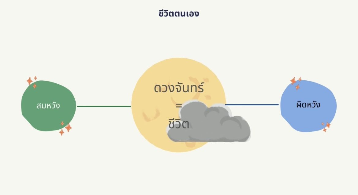 - ดวงจันทร์เปรียบเหมือนชีวิตที่มีทั้งสมหวังและผิดหวัง คนเราไม่มีทางสมหวังทุกเรื่องและคนเราไม่มีทางผิดหวังทุกเรื่องเช่นกัน มันแค่ว่า ไม่ใช่วันของเรา แต่เมื่อถึงวันนั้นแล้ว เราก็จะไม่หลงระเริงกับมัน เพราะเรารู้แล้วว่า ชีวิตมีสองด้านคือสมหวังและผิดหวังเท่านั้นเอง