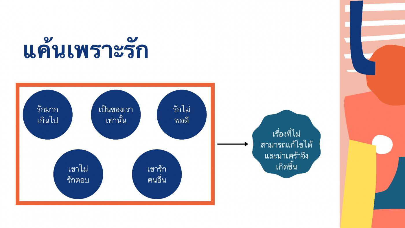 แล้วเรื่องก็จบตรงที่ว่านกับหมอดินรักกัน เราว่า เรื่องนี้ไม่ได้เน้นเส้นเรื่องความรักเท่าไหร่ เน้นเรื่องการค้นหาว่าใครเป็นฆาตกรมากกว่า