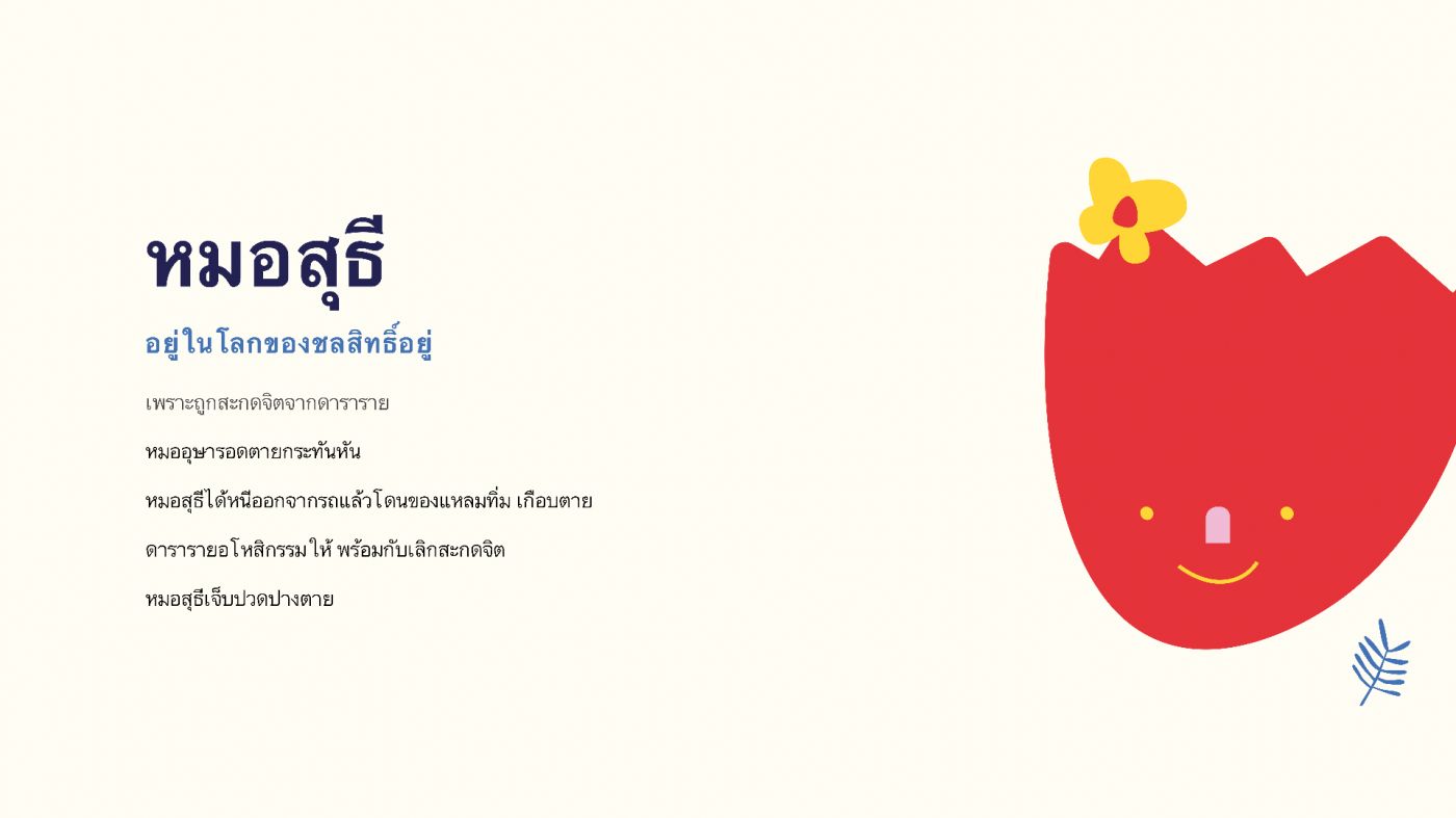 หมอสุธีตัดสินใจฆ่าหั่นศพหมอดารารายเพราะว่า หมอจะเอาเรื่องความรักของทั้งสอง (เป็นชู้กัน) ไปเปิดเผย และฆ่าคนอีกสองคน ก่อนที่ตัวเองจะถูกจับ