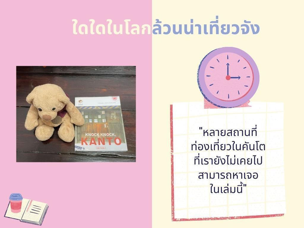 ในแต่ละที่เที่ยวมีประสบการณ์มากมายน่ารักมาเล่าสู่กันฟัง อย่างเช่น เซ็นโตะ ต่างจากออนเซ็น เพราะคือบ่อน้ำร้อนที่เกิดจากน้ำประปา และเราต้องผสมน้ำร้อนเอง ต้องเตรียมของมาเองในการแช่น้ำร้อนนี้ อ่านแล้วอดตื่นเต้นไม่ได้ และอยากไปลองสักครั้งหนึ่ง