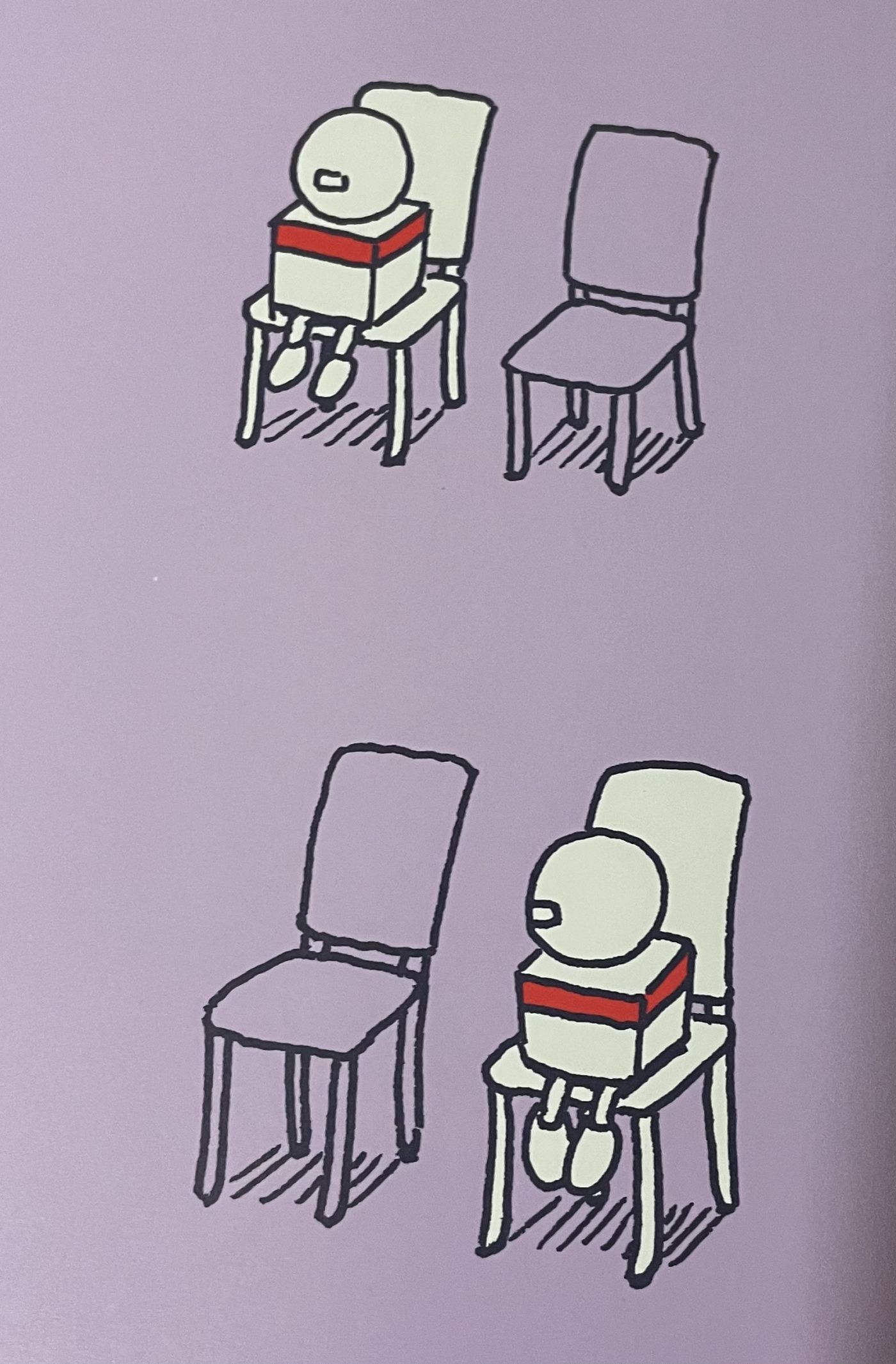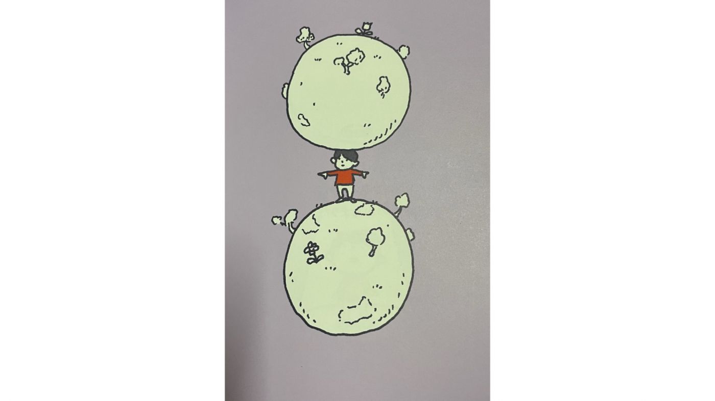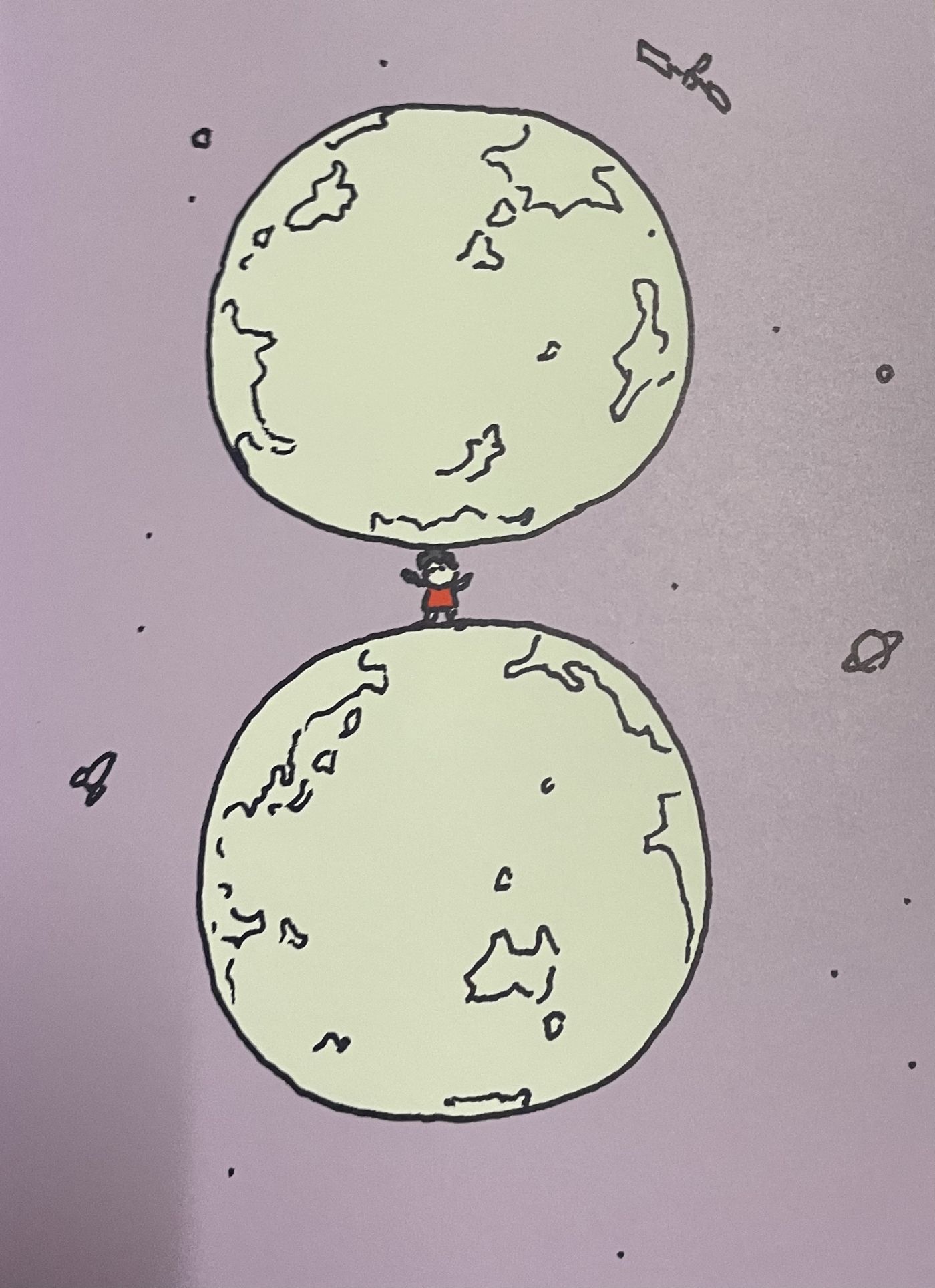 เรื่องนี้เป็นเล่มการ์ตูนภาพขนาดบาง แต่ศัพท์ค่อนข้างยากในการตีความ ทำให้เราอ่านนานมาก และเนื่องด้วยเปิดพจนานุกรม พร้อมกับพยายามเข้าใจศัพท์ และอ่านทวนหลายๆรอบจนจบหลายรอบ และพบว่า เรื่องราวนี้น่ารักมาก เป็นเรื่องราวของเด็กที่เหมือนทำตัวเองสูญหายไป และได้ค้นพบตัวเองว่า ตัวเราอยู่ที่ไหน ตัวเราเล็ก ตัวเราใหญ่ ตัวเราคือใคร และเราพร้อมที่จะกลับมาเก็บตัวที่หายไป ซ่อมแซม เข้าใจ จนกลับมาดีขึ้นกว่าเดิม และเราชอบนะที่มีการเปรียบเทียบโลกทั้งสองใบให้เราเห็นภาพง่าย ชัดเจน เกี่ยวกับตัวเรา มากที่สุด เพราะจริงๆแล้ว ไม่ว่าเด็กหรือผู้ใหญ่ล้วนติดอยู่ในโลกสมมตินี้ด้วยกัน แต่เราทำยังไงให้โลกสมมตินี้กับโลกความจริงอยู่กันอย่างสมดุลค่ะ
