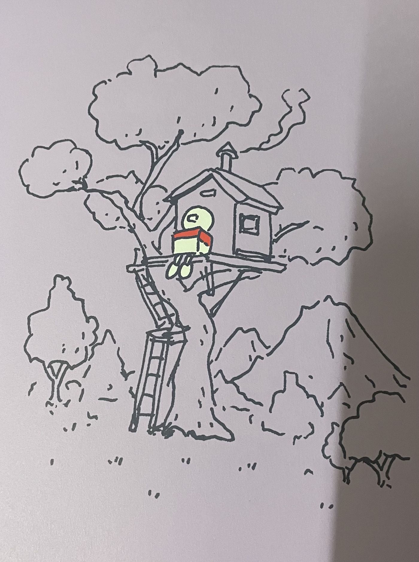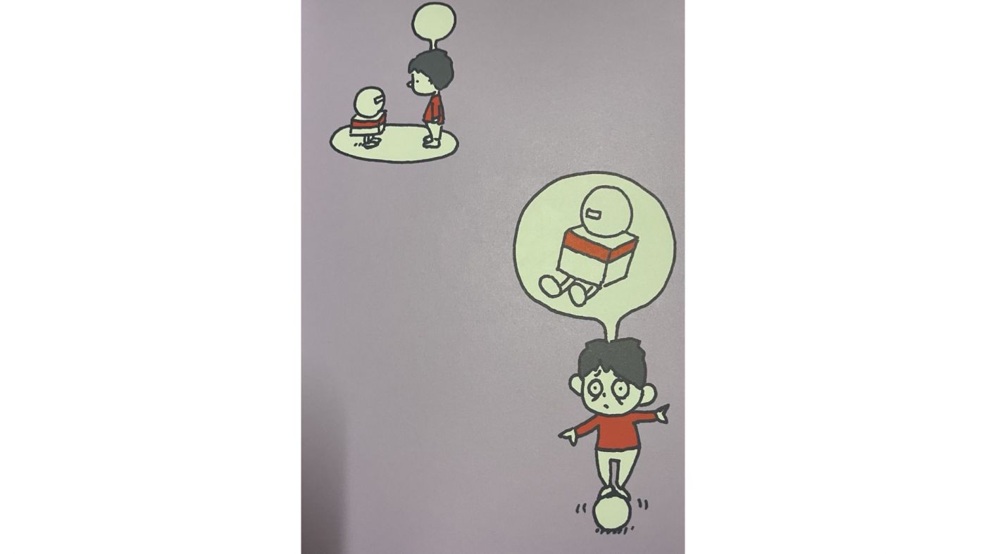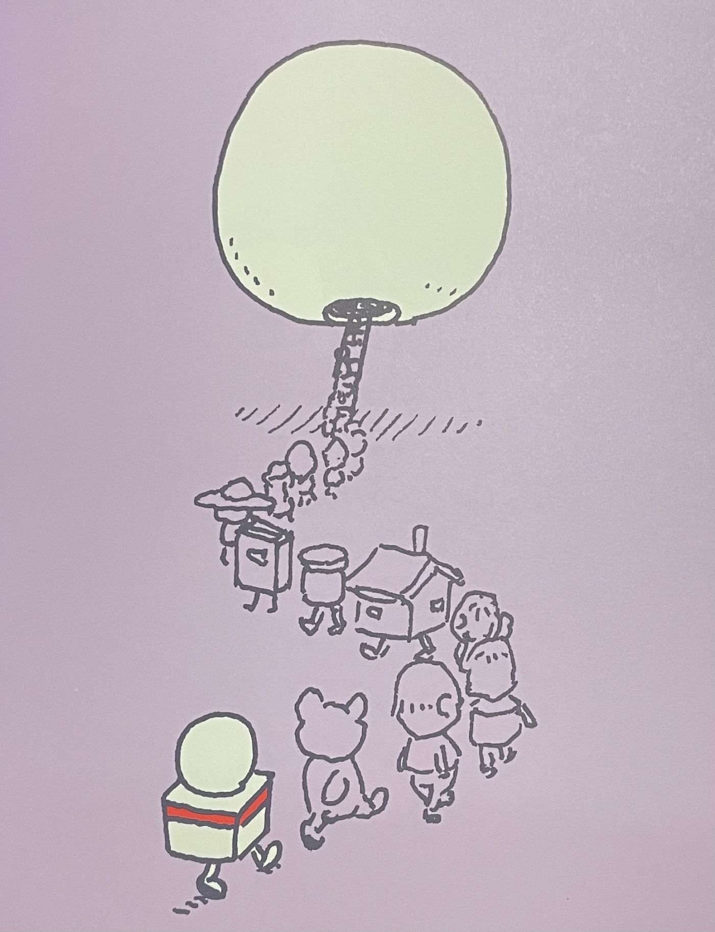 เรื่องนี้เป็นเล่มการ์ตูนภาพขนาดบาง แต่ศัพท์ค่อนข้างยากในการตีความ ทำให้เราอ่านนานมาก และเนื่องด้วยเปิดพจนานุกรม พร้อมกับพยายามเข้าใจศัพท์ และอ่านทวนหลายๆรอบจนจบหลายรอบ และพบว่า เรื่องราวนี้น่ารักมาก เป็นเรื่องราวของเด็กที่เหมือนทำตัวเองสูญหายไป และได้ค้นพบตัวเองว่า ตัวเราอยู่ที่ไหน ตัวเราเล็ก ตัวเราใหญ่ ตัวเราคือใคร และเราพร้อมที่จะกลับมาเก็บตัวที่หายไป ซ่อมแซม เข้าใจ จนกลับมาดีขึ้นกว่าเดิม และเราชอบนะที่มีการเปรียบเทียบโลกทั้งสองใบให้เราเห็นภาพง่าย ชัดเจน เกี่ยวกับตัวเรา มากที่สุด เพราะจริงๆแล้ว ไม่ว่าเด็กหรือผู้ใหญ่ล้วนติดอยู่ในโลกสมมตินี้ด้วยกัน แต่เราทำยังไงให้โลกสมมตินี้กับโลกความจริงอยู่กันอย่างสมดุลค่ะ