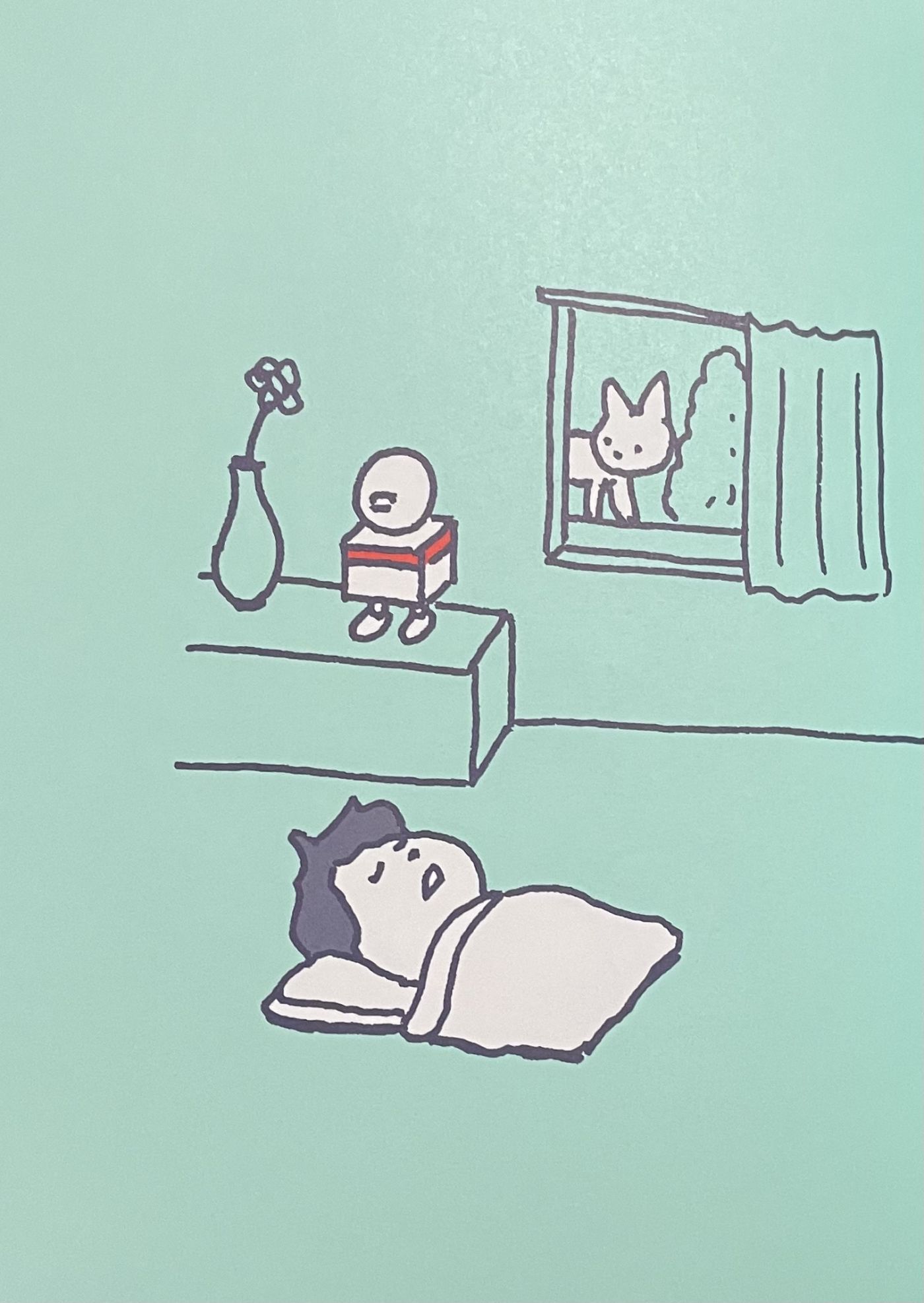 ภาพเรื่องเริ่มต้น คือ เด็กนอนหลับอยู่ และแมวมาขโมยหุ่นยนต์ไป