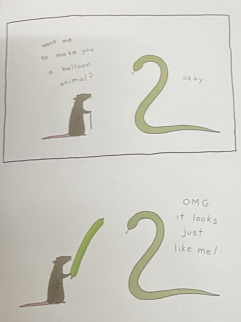จากตัวอย่างนี้จะพบว่า เจ้าปลาเข้าใจผิดคิดว่าเป็นแมงกระพรุนและตนกำลังจะถูกต่อย ส่วนเจ้ากระรอกเป็นเพื่อนที่ดีที่ชี้ให้เห็นถึงความจริงว่า มันเป็นเพียงแค่ถุงพลาสติก เป็นการปลอบใจอีกด้วย