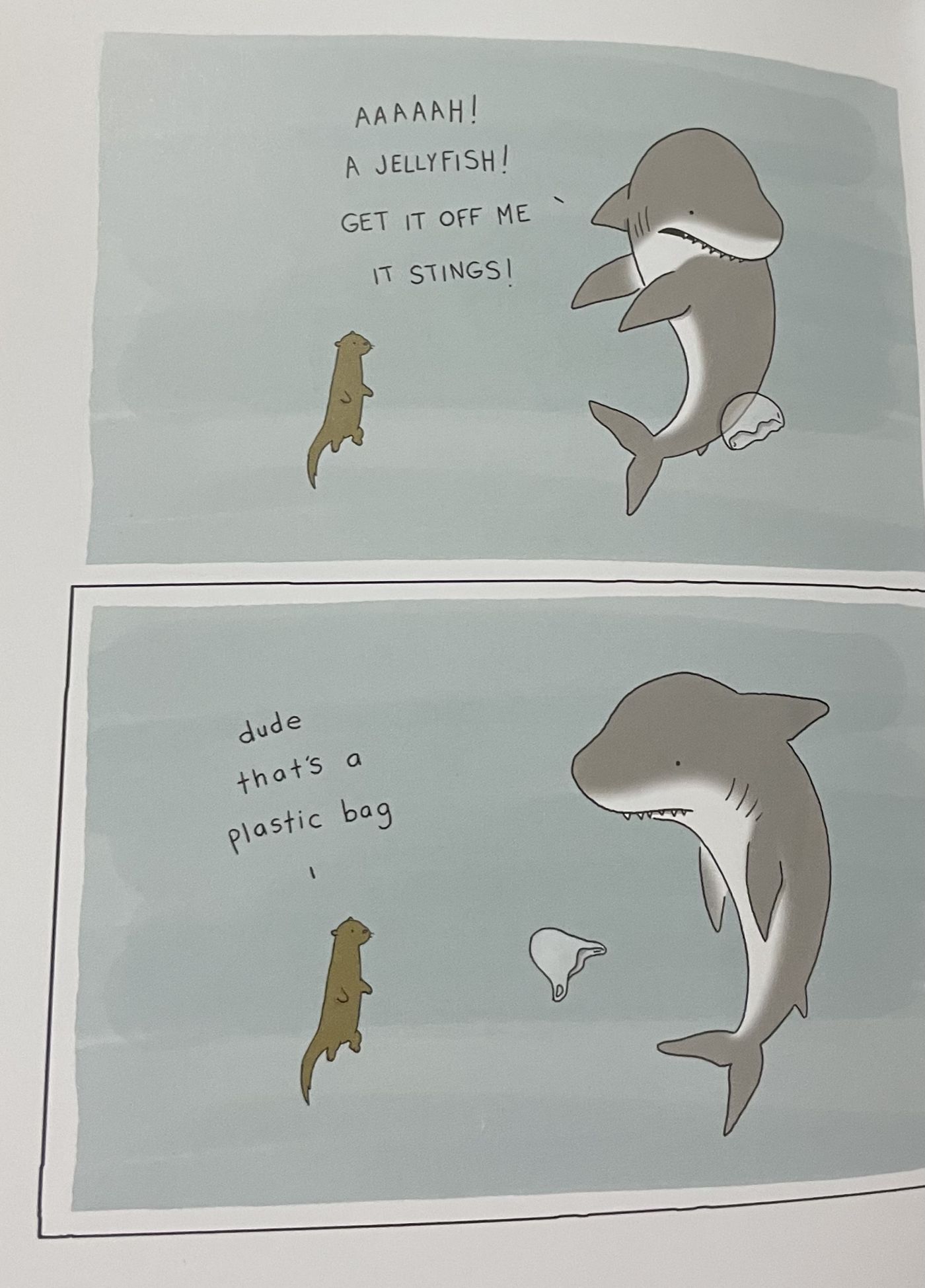 (และชี้ให้เห็นถึงมนุษย์ที่ชอบทิ้งขยะลงทะเล