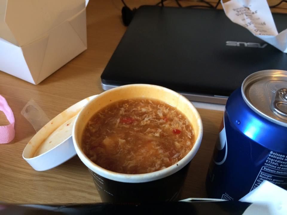 และอาหารจีนอร่อยมาก คือ ตอนแรกที่เห็นสุดช็อกว่า หน้าตาดูไม่น่ารับประทานเลย แต่รสชาติมันอร่อยมาก คือ เผ็ดมากแบบที่เราไม่ได้กินรสชาติเผ็ดแบบนี้มานานแล้ว และซุปมันกินตัดกับรสชาติเผ็ดให้มันพอดีๆเลย ซึ่งมันมีสมุนไพรจีนบางอย่าง พอทานแล้วนึกถึงยาหวานๆอร่อยๆที่แม่เคยให้ตอนเด็กกินเพื่อแก้ร้อนใน