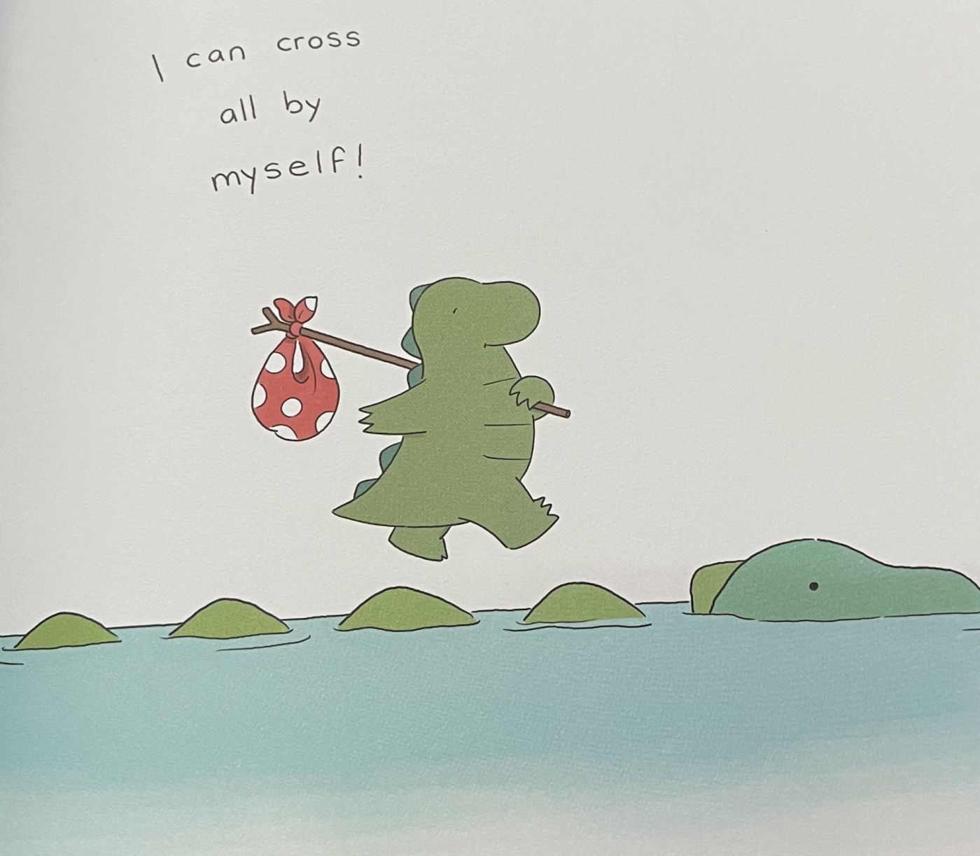 โรรี่กำลังจะข้ามแม่น้ำและกำลังหาทางอยู่ พ่อที่แอบหลบอยู่ก็รีบมาช่วยเป็นสะพานให้ลูกข้ามแม่น้ำไป