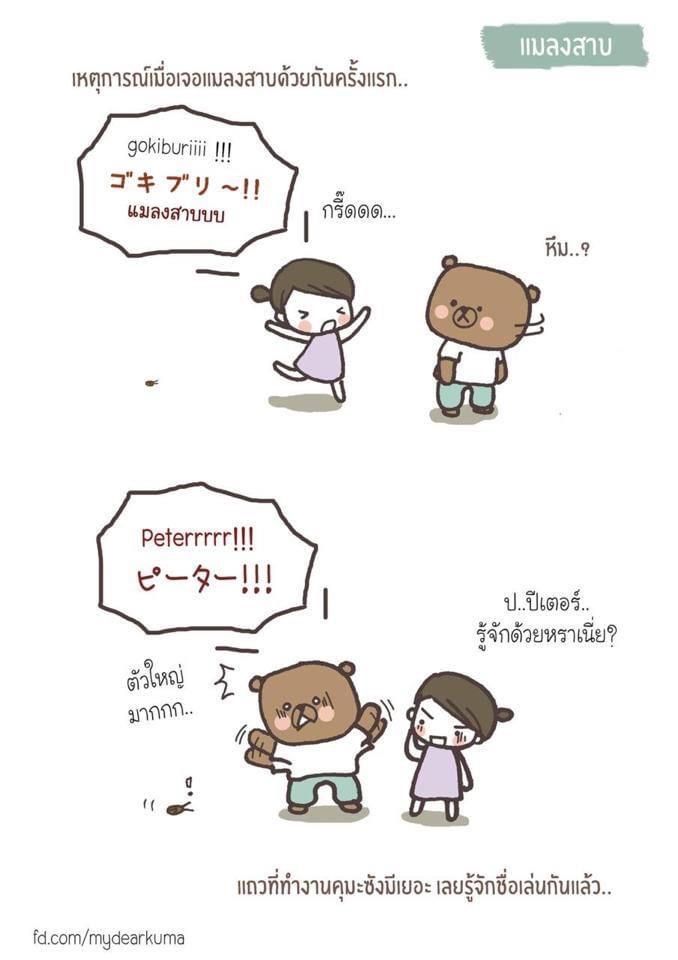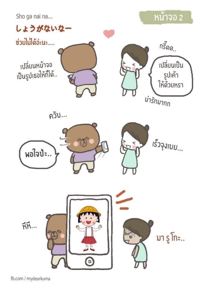 หลายครั้งอ่าน ก็ขำไม่ออกกับมุกตลกเหมือนกัน เพราะบางที คิดว่า คุมะซัง ปากร้ายเหมือนกันนะเนี่ย แต่ถ้ามองข้าม มันก็ตลกในความน่ารักของความรักของทั้งสองคนค่ะ