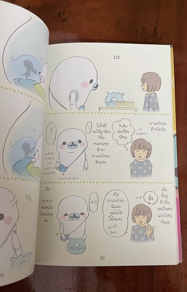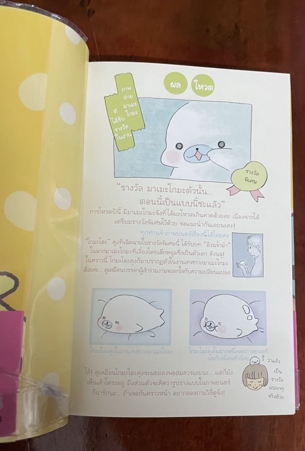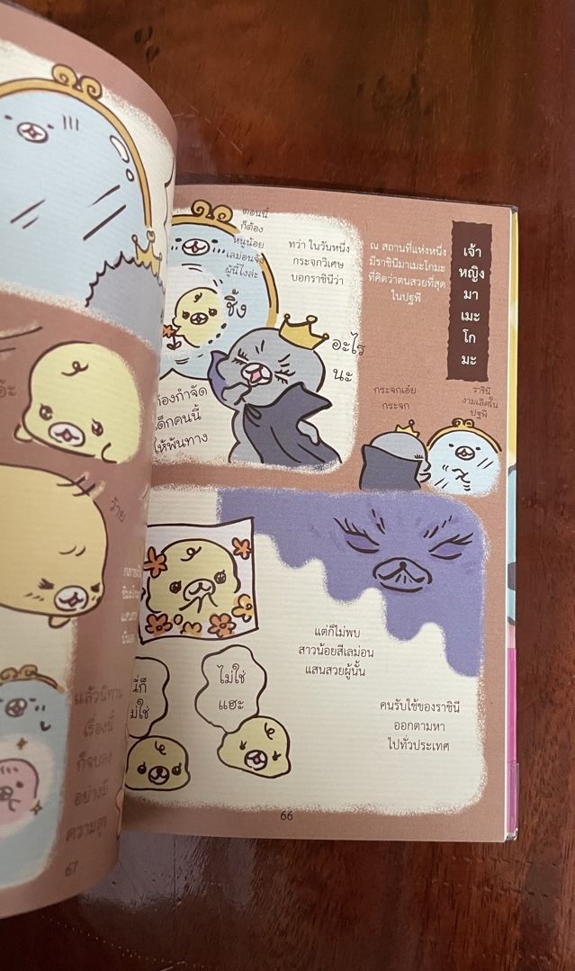 เรื่องราวในเล่มนี้มีนิทานที่ใช้มาเมะโกมะในการแอบเลียนแบบนิทานดัง ซึ่งอ่านแล้วอดขำไม่ได้ ว่า คิดได้เนอะ แล้วมันก็ตลกในภาพวาดที่เขาวาดให้เราอ่านขำๆและสนุก เราว่า คนเขียนเริ่มหมดเรื่องราวแล้วล่ะ เลยต้องหาเรื่องนี้เข้ามาเขียนแทน เบรกอารมณ์ให้สนุกอีกแบบ
