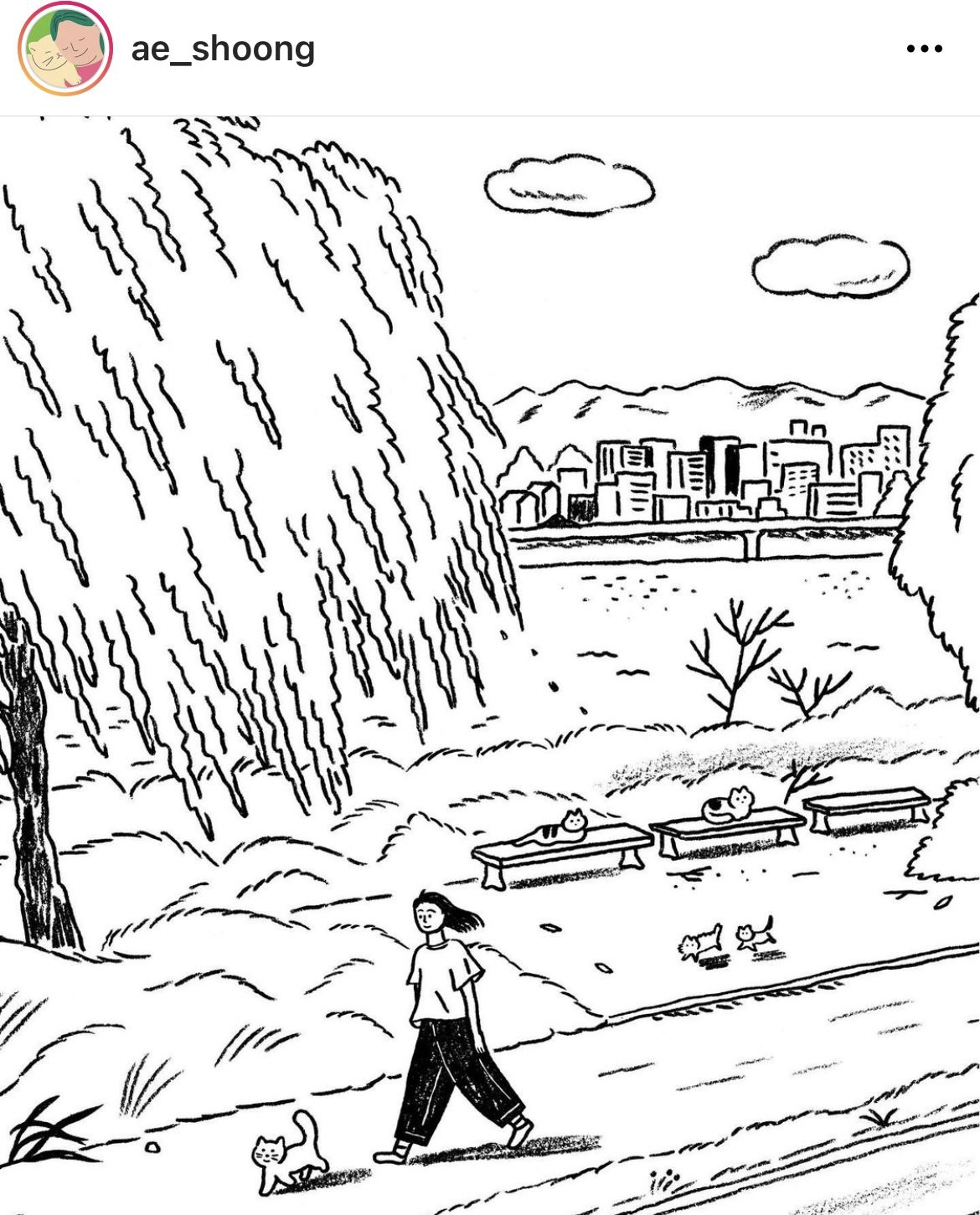 อย่างที่เราบอกค่ะ เราเคยตามไอจีคุณแอซยุงมาก่อนที่จะอ่านหนังสือ เพราะชอบแมวและงานวาดของคุณเขา จนกระทั่ง เราพบว่า มีหนังสือเเปล เราตัดสินใจซื้อมาอ่าน